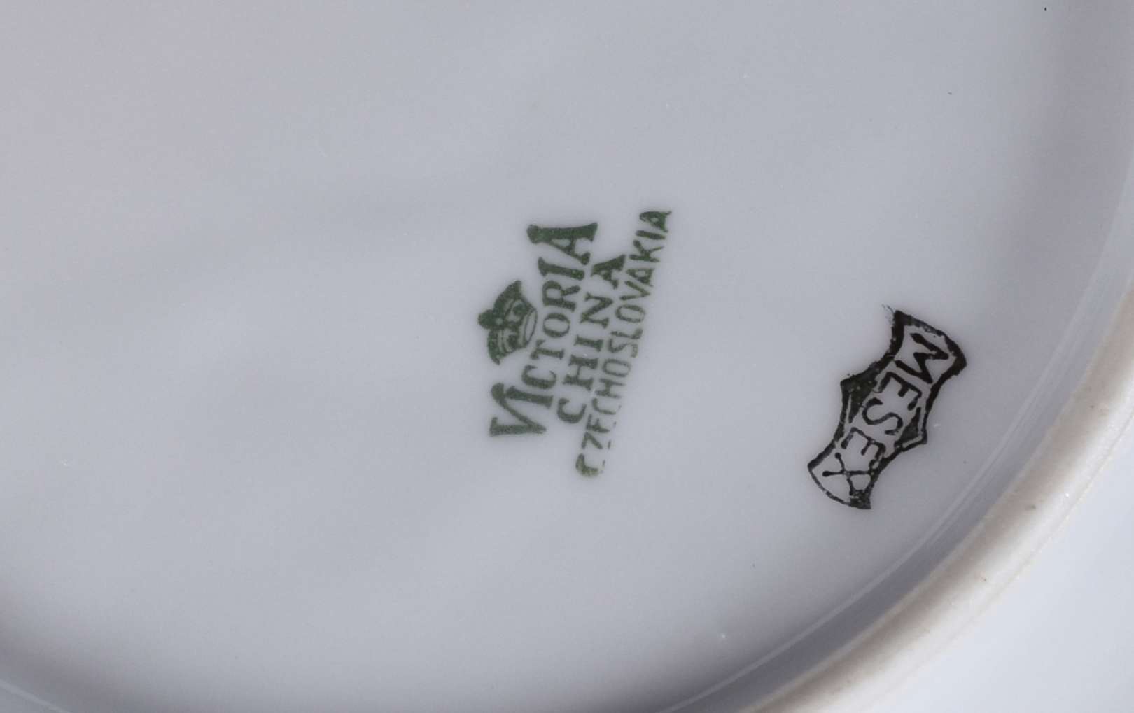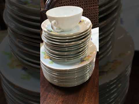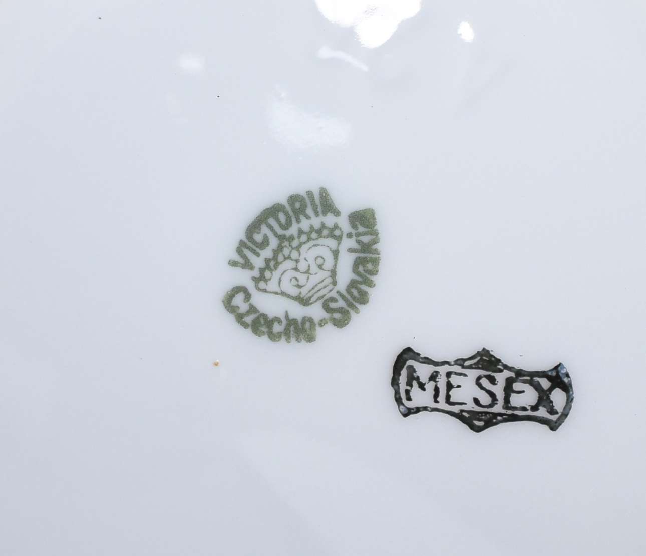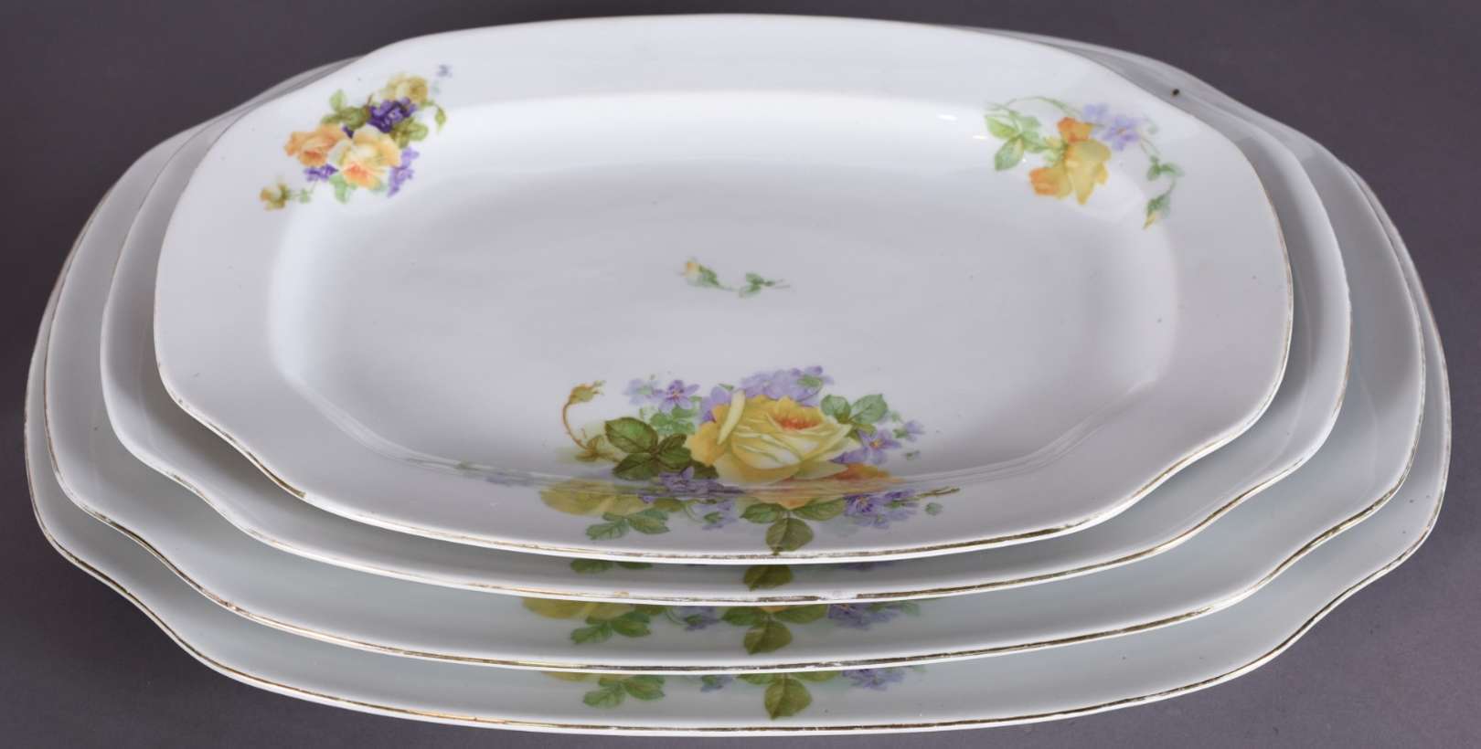 Serviço de jantar de porcelana francesa finamente decorada com pequenas flores em policromia e guirlandas verdes nas ...