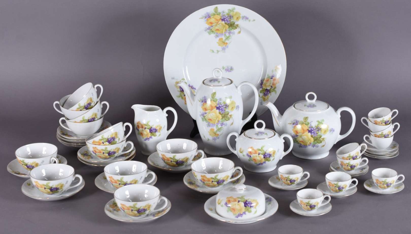 Serviço de chá e café porcelana japonesa composto de: 6 xícaras de café com pires, 6 xícaras de chá com pires, bule, ...