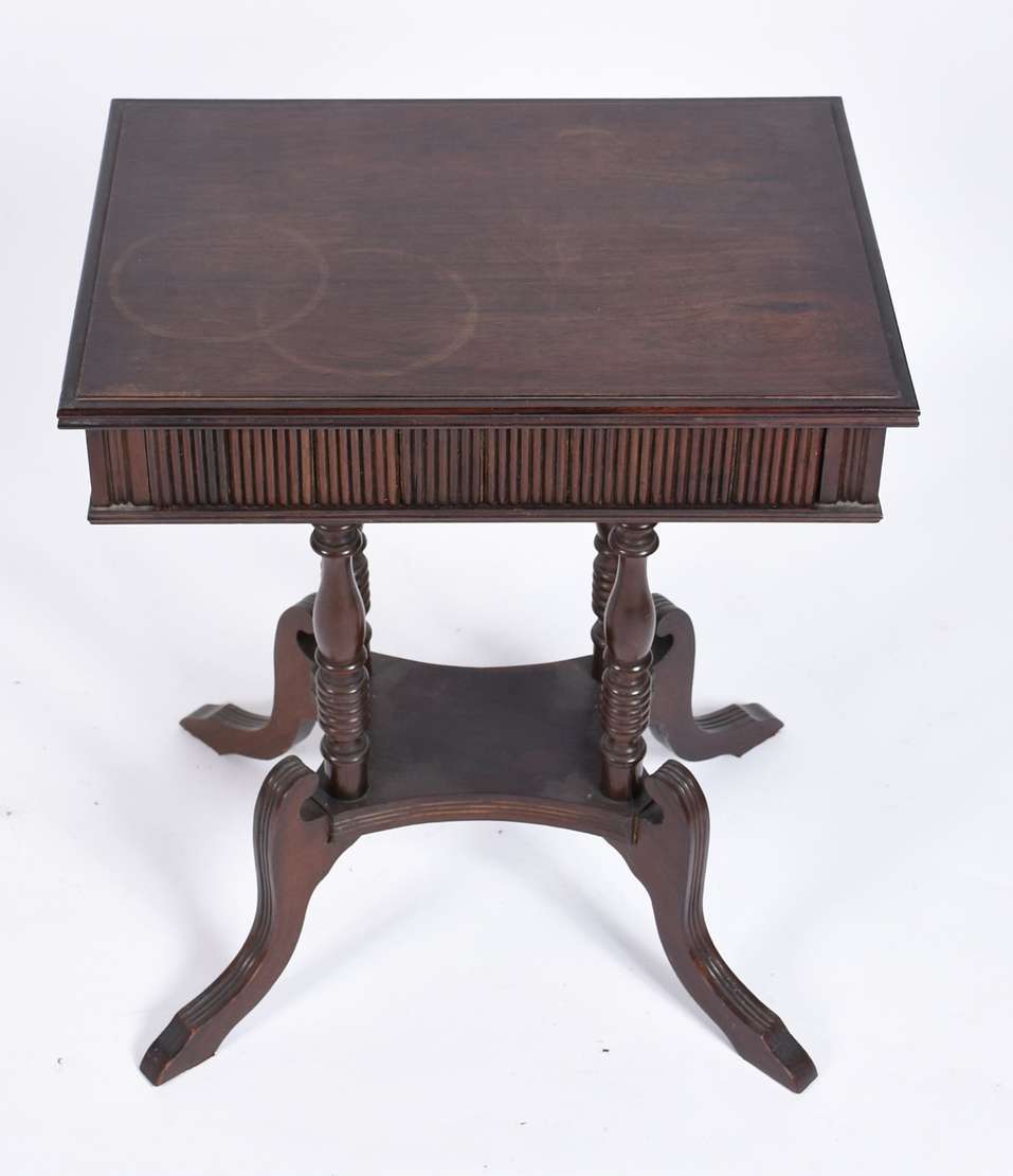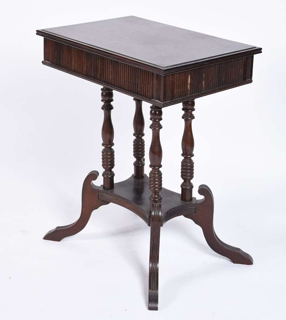 Mesa quadrada de madeira nobre saia recortada em gomos, estilo colonial brasileiro.