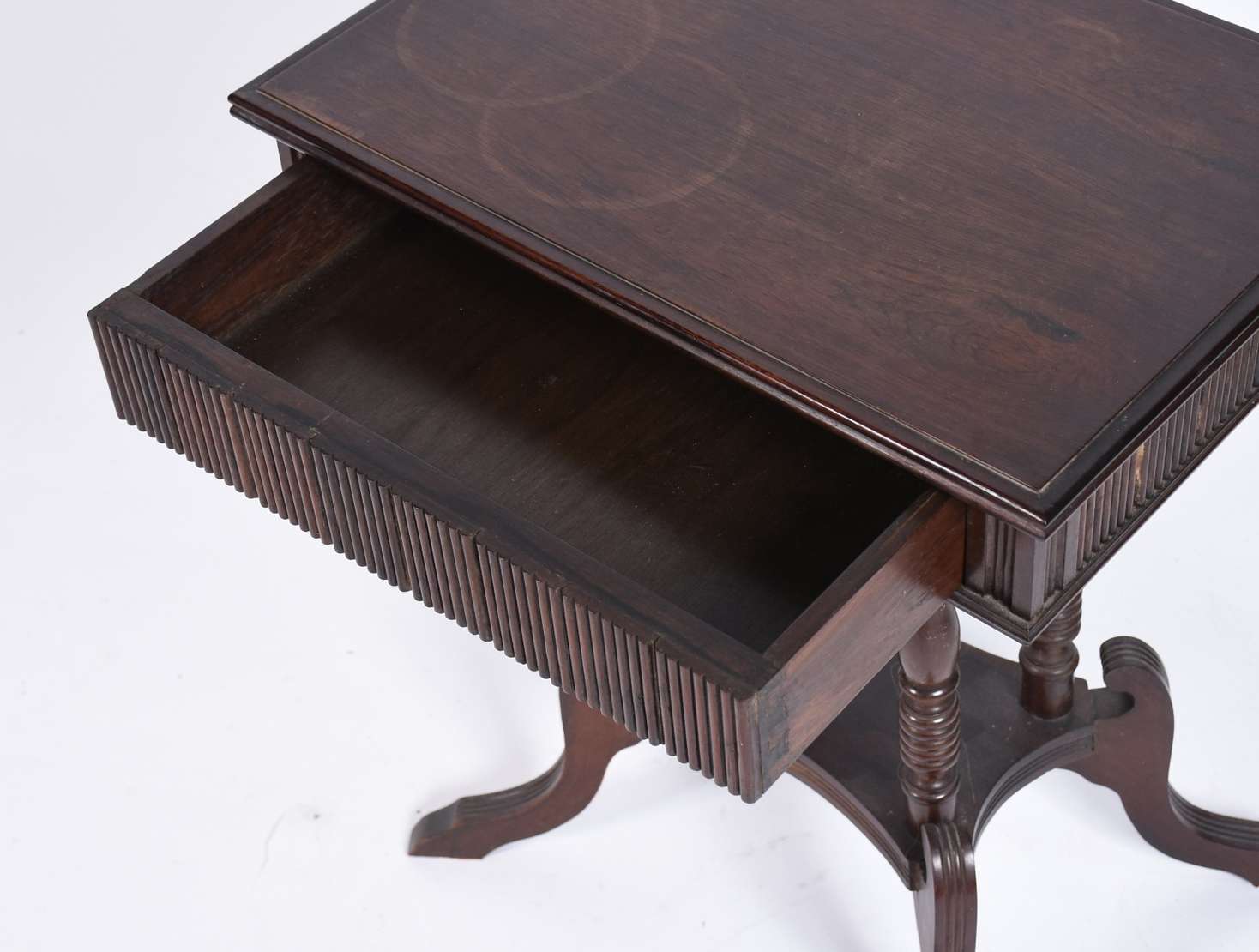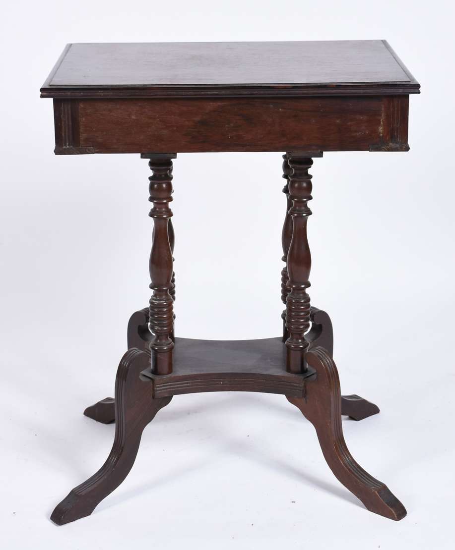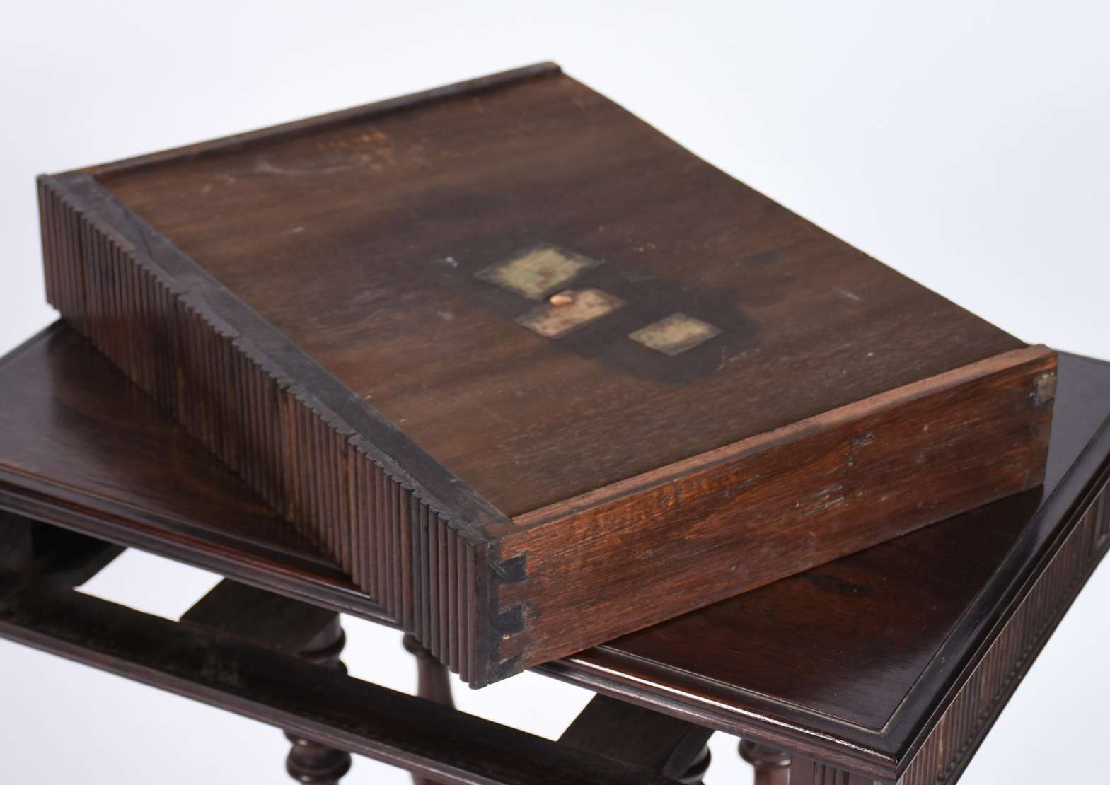 Penteadeira de mesa de madeira nobre com trabalhos em marqueterie, espelho articulado, uma gaveta.