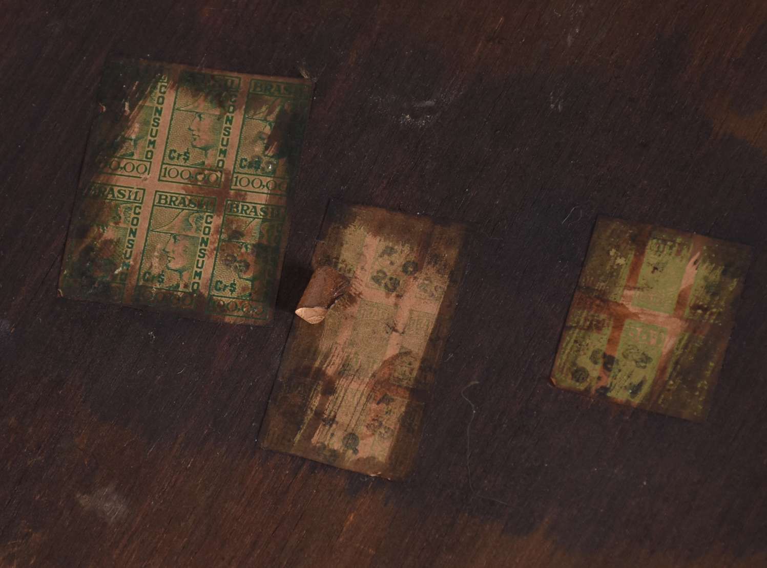 Arca bar de madeira nobre estilo colonial brasileiro, porta articulada sobre duas gavetas, pés de bolacha.