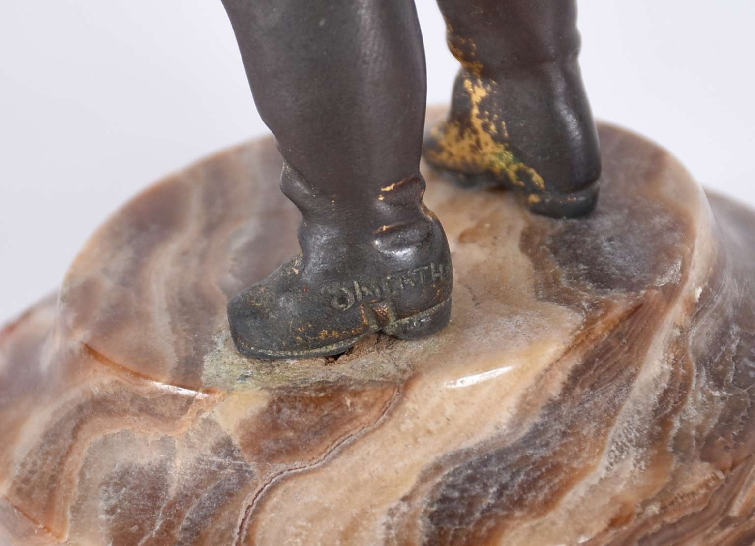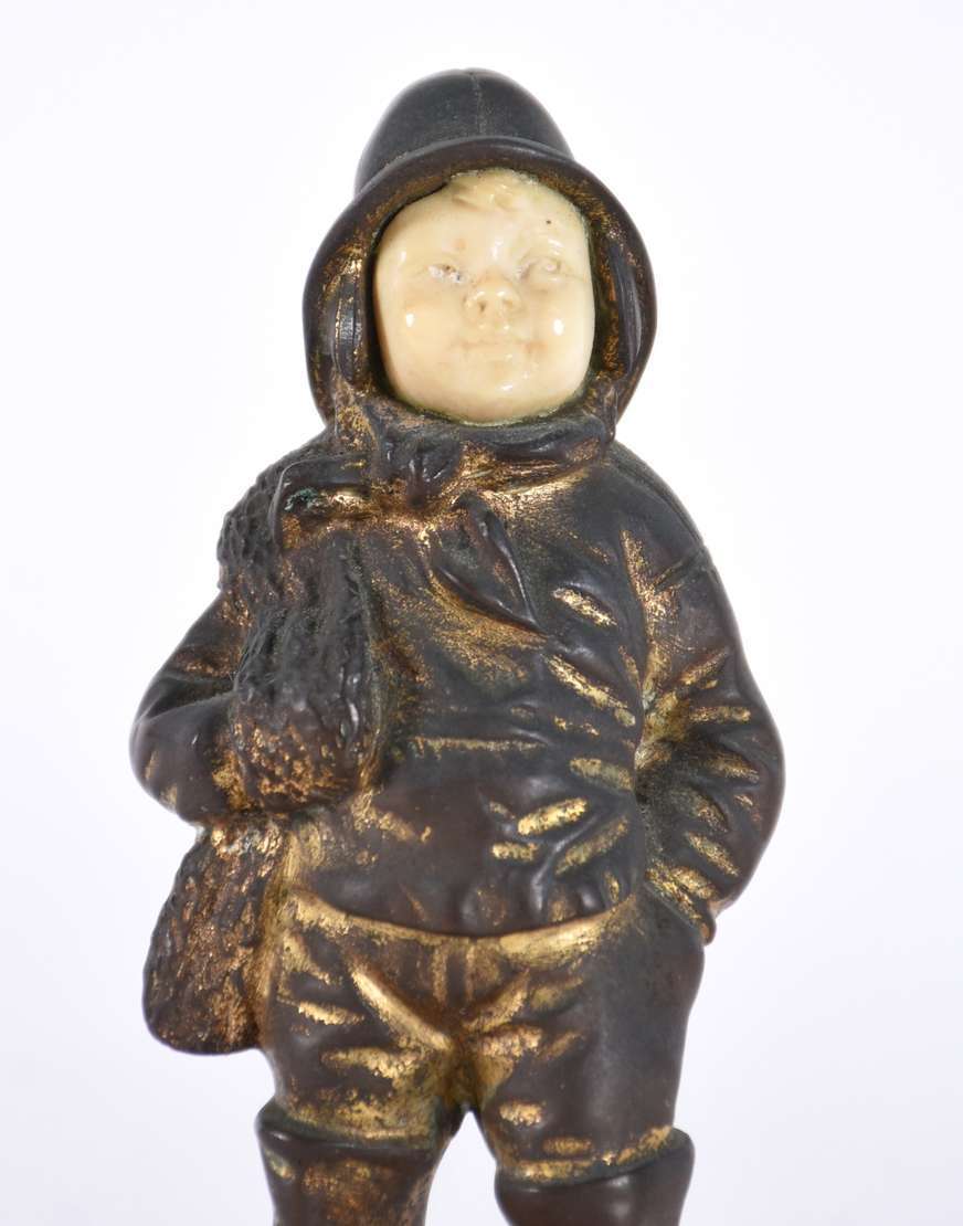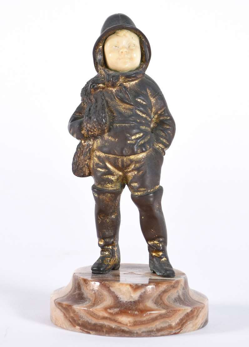 Escultura representando "Bebê com gatinho" de biscuit alemão policromado. Marcado na base.