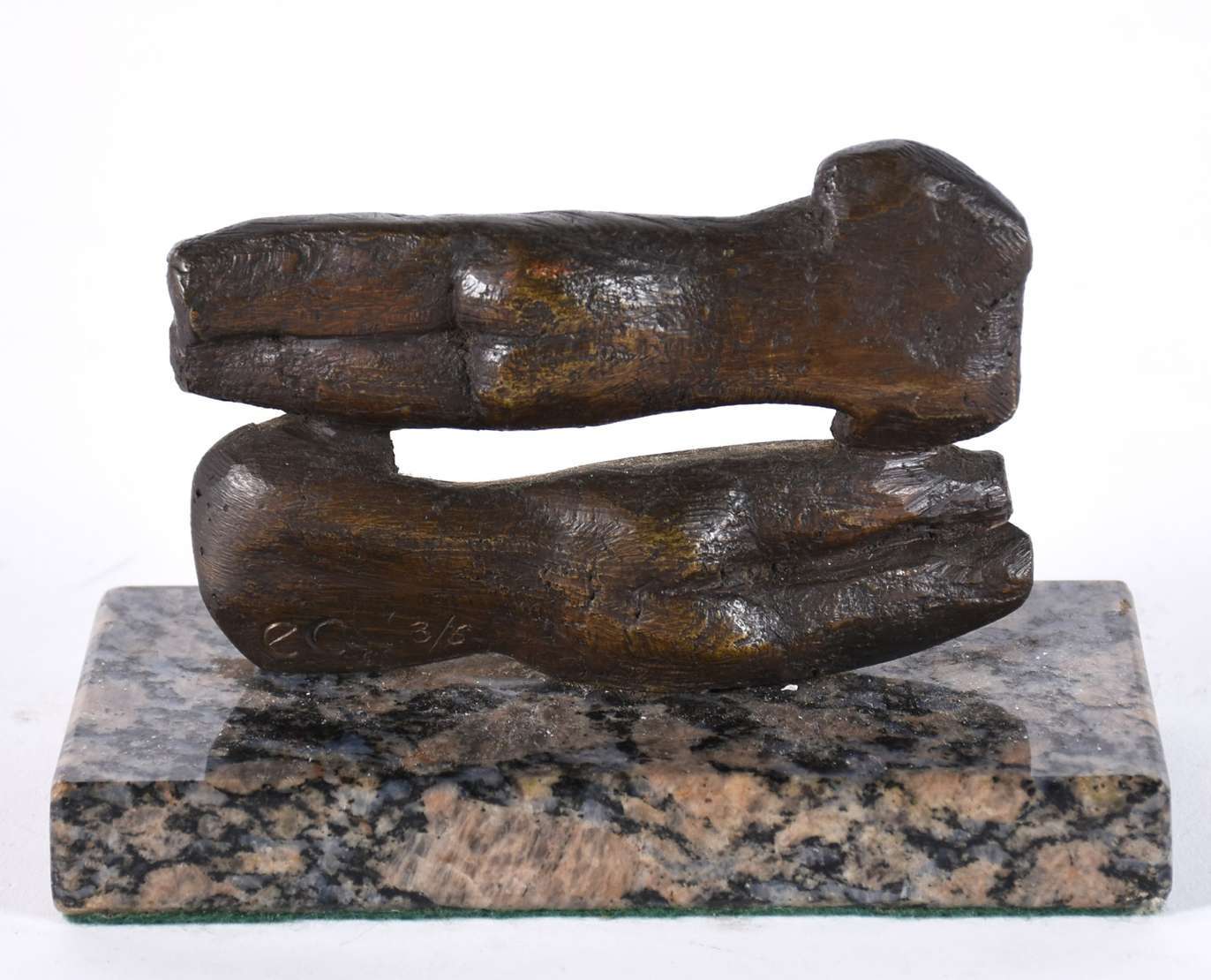 Escultura de bronze patinado representando dorsos femininos, base de mármore, assinado e numerado 3/6. Fotografado no livro do artista.