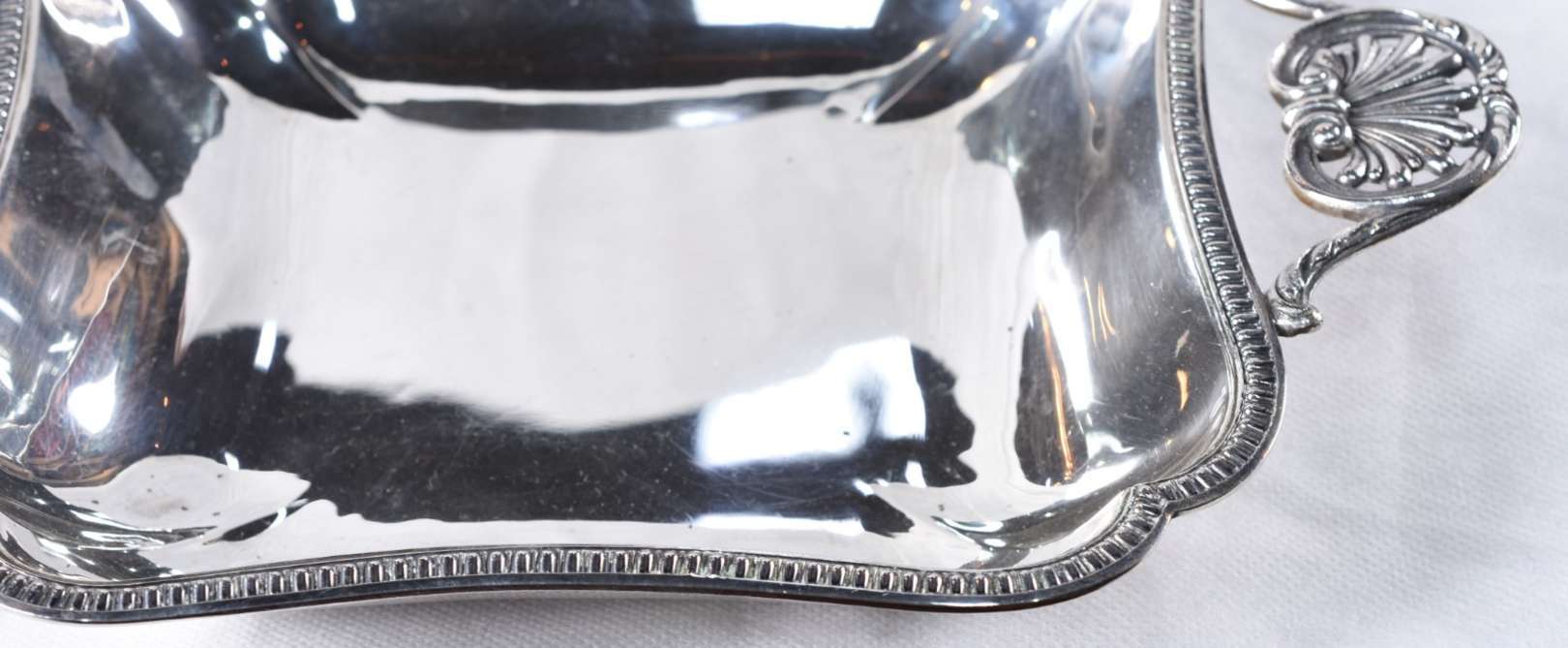 Espevitadeira com seu berço de prata portuguesa contraste P Coroa, borda trabalhada com folhagens em relevo. Peso da ...