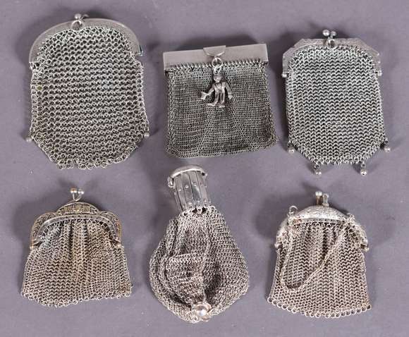 Seis bolsas de malha de prata. Peso da prata: 190 g(Por motivos de segurança a peça não se encontra na loja)