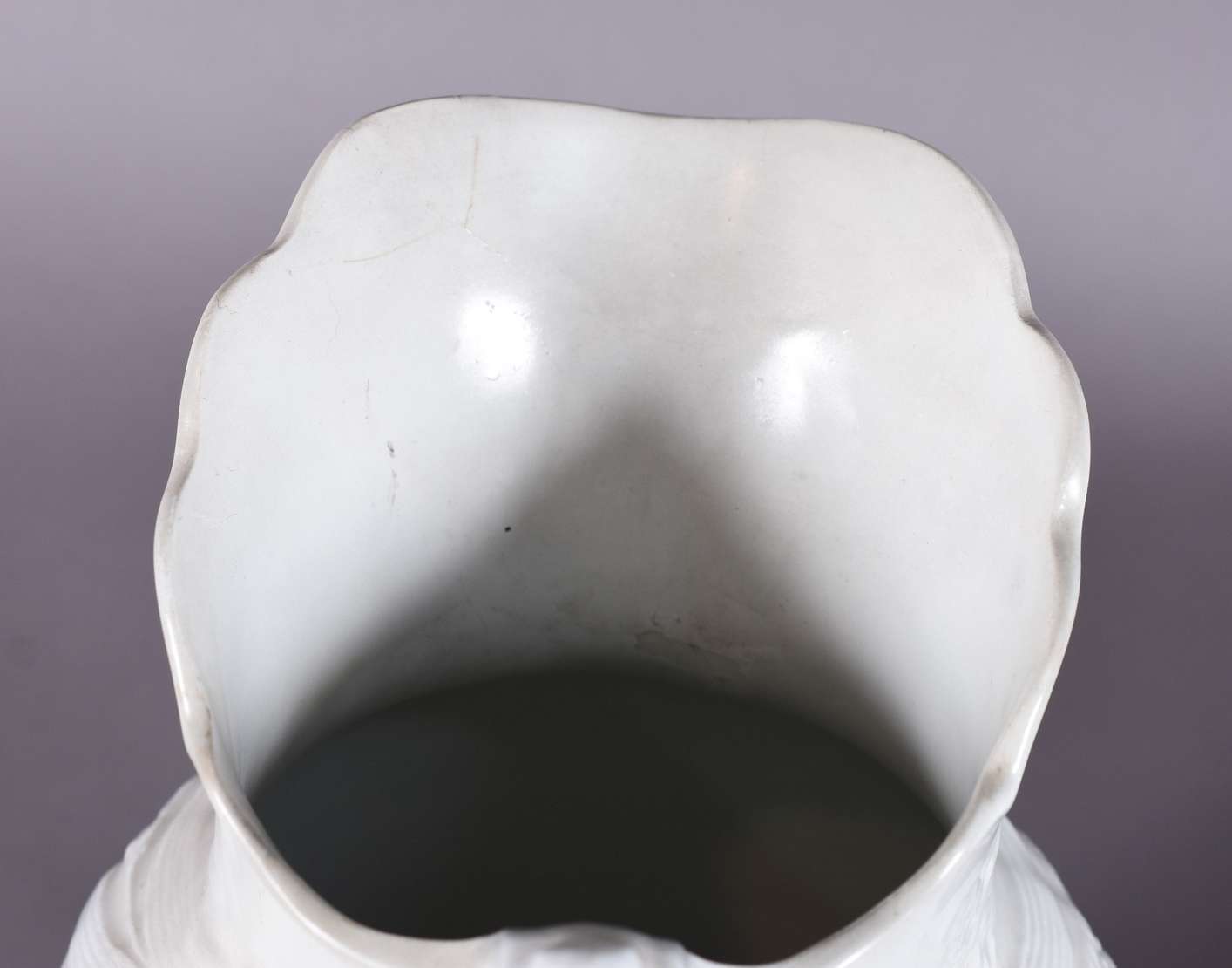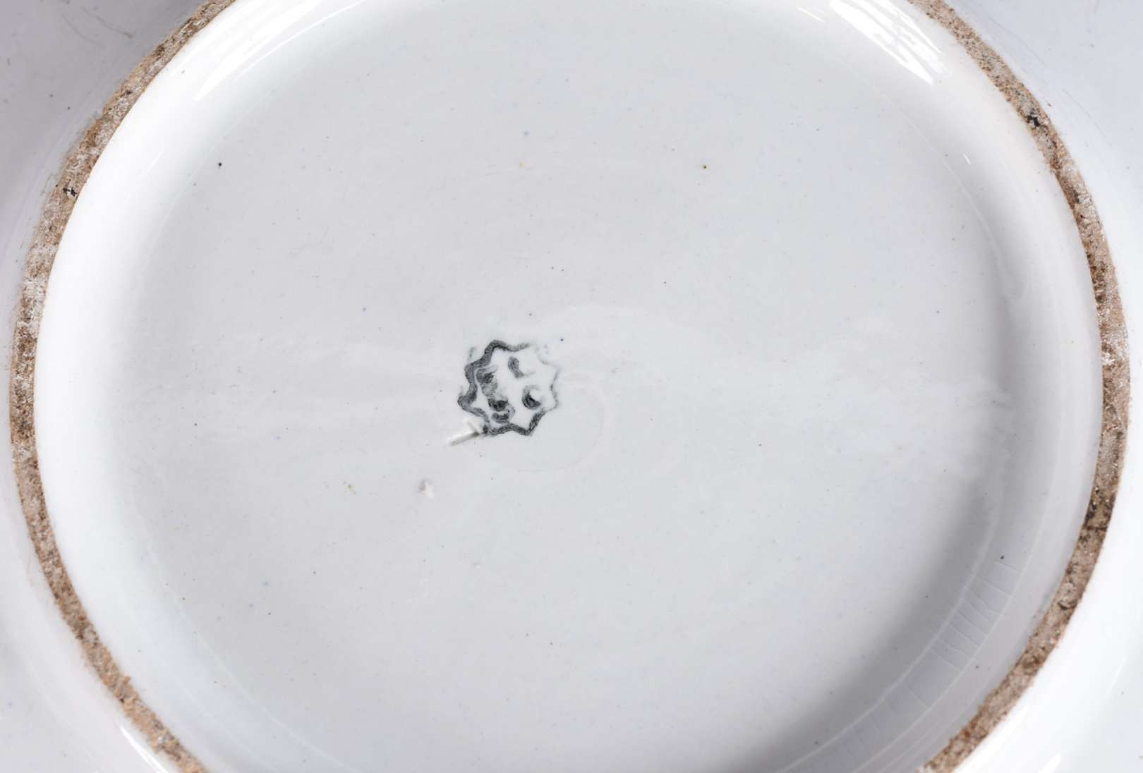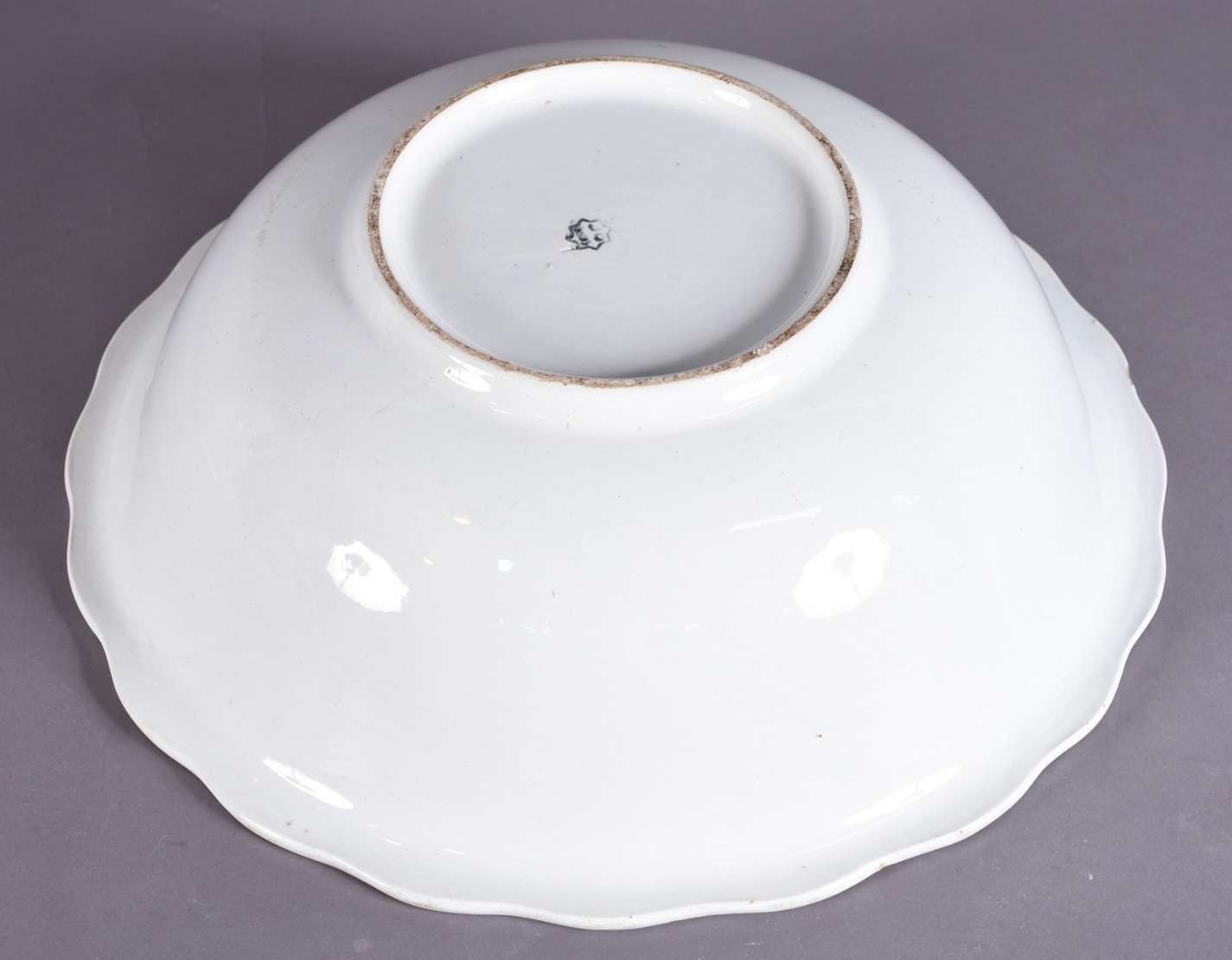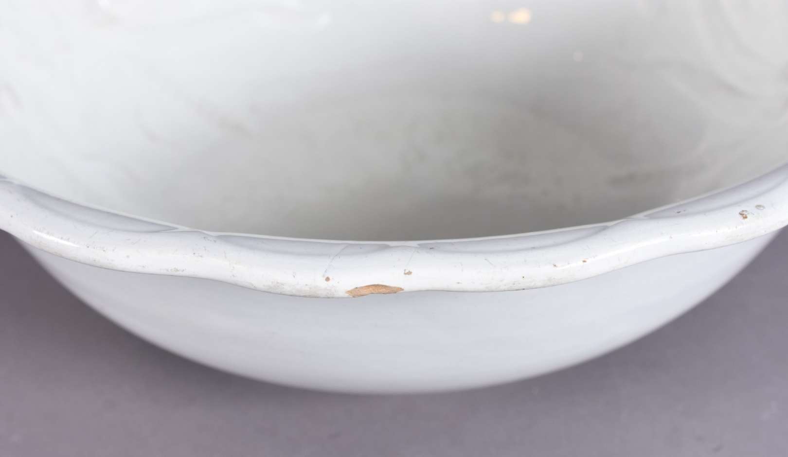 Quatro peças de porcelana oriental azul e branca, sendo: bowl, cachepot (bicado na borda) com presentoir; cachepot e ...