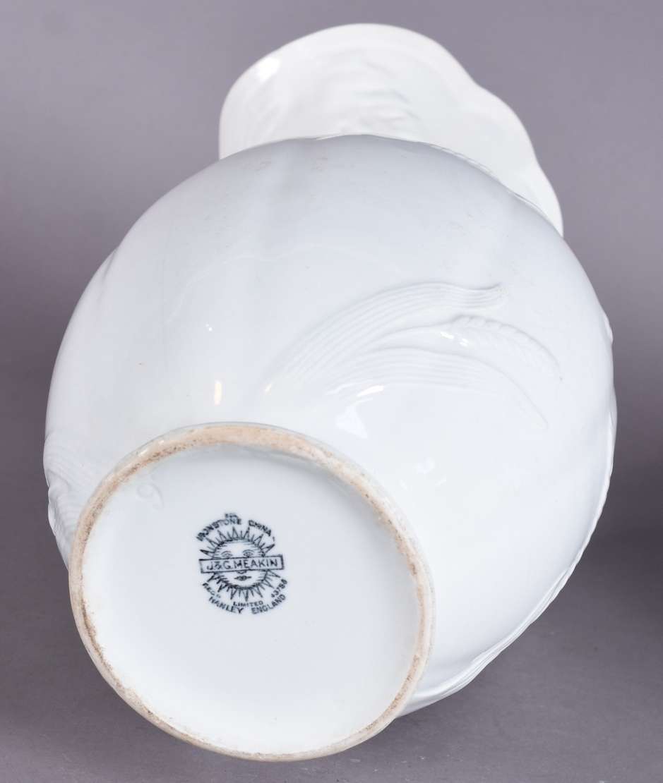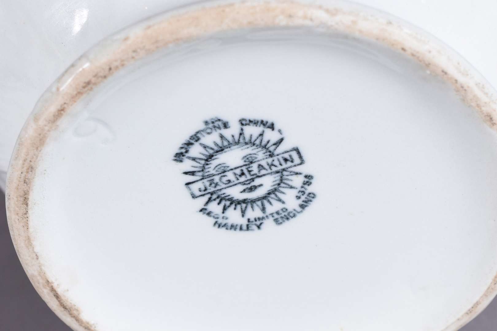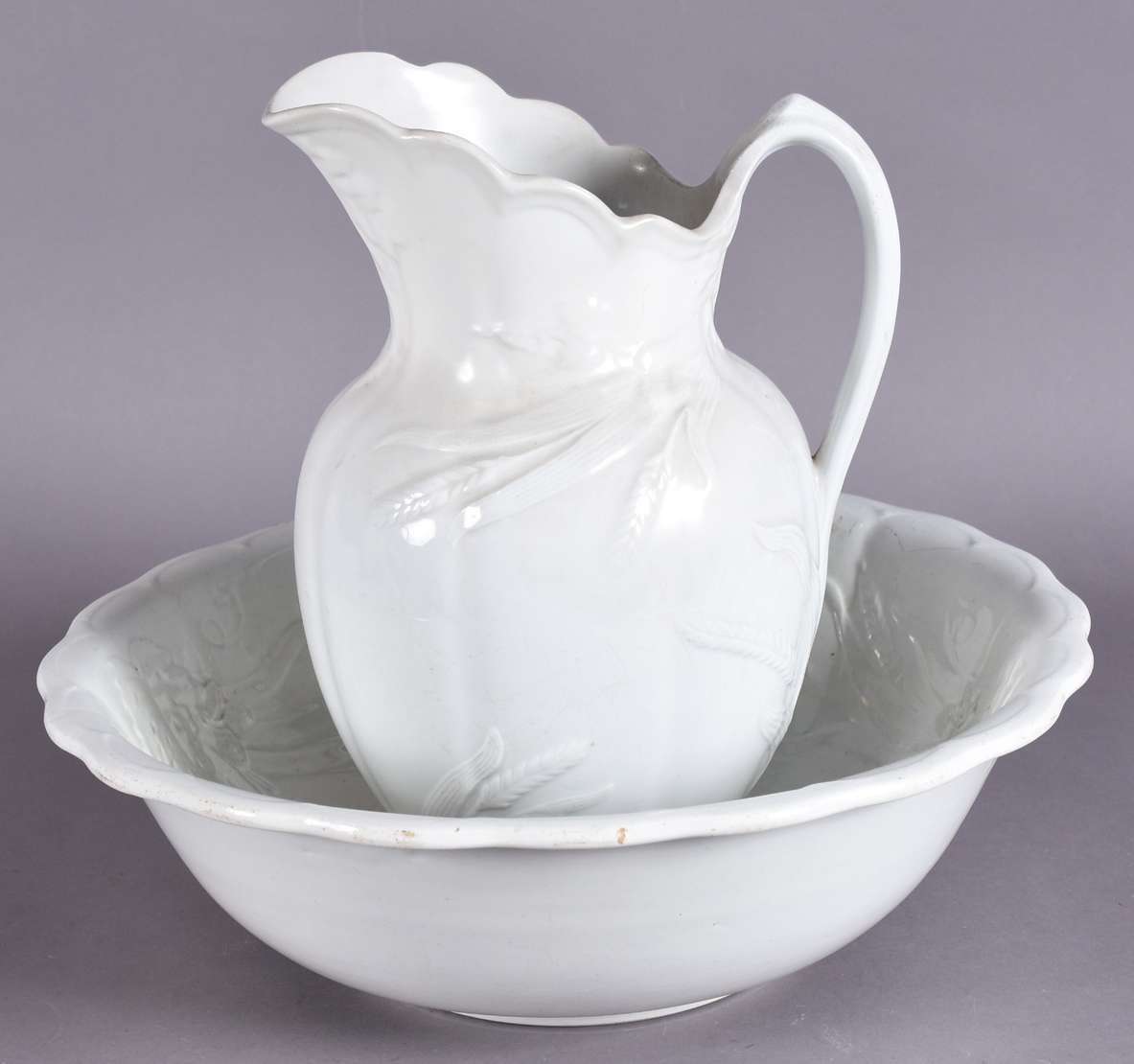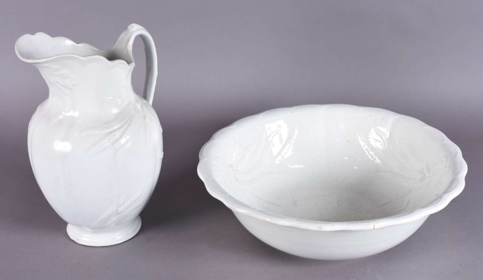 Quatro peças de porcelana oriental azul e branca, sendo: bowl, cachepot (bicado na borda) com presentoir; cachepot e ...