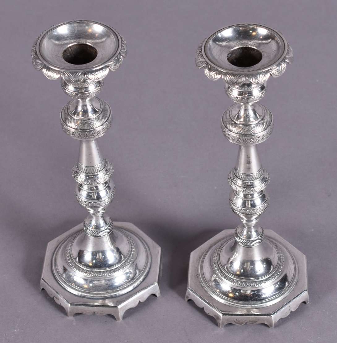 Castiçal de prata portuguesa contrastada, base com detalhes vazados e pés de garra. Peso da prata: 300 g (Por motiv...