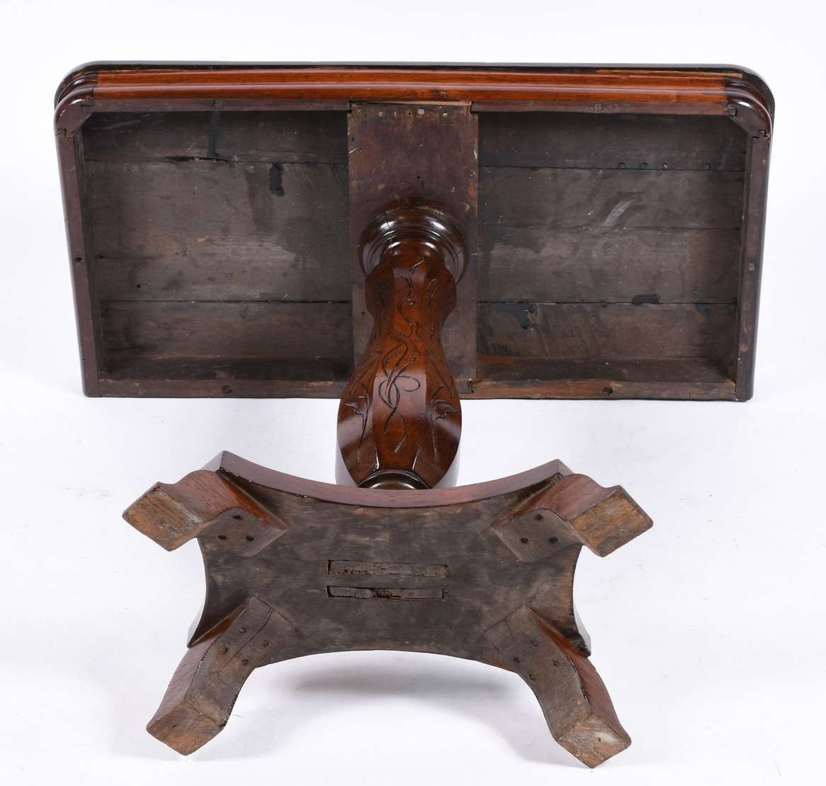 Coluna de madeira nobre torneada, tampo e base quadrangulares.