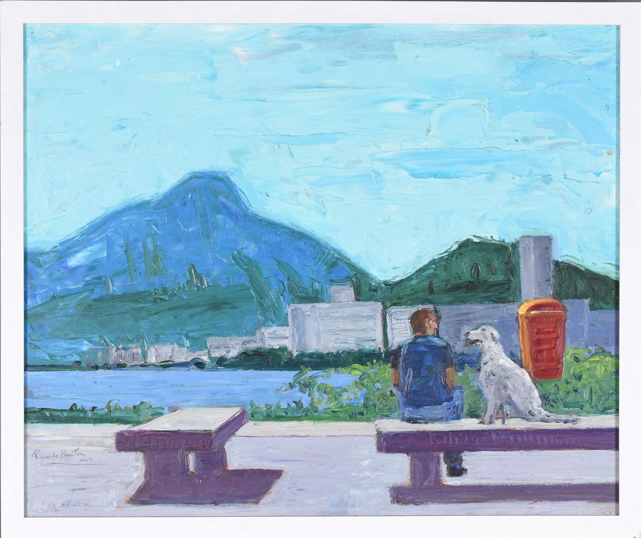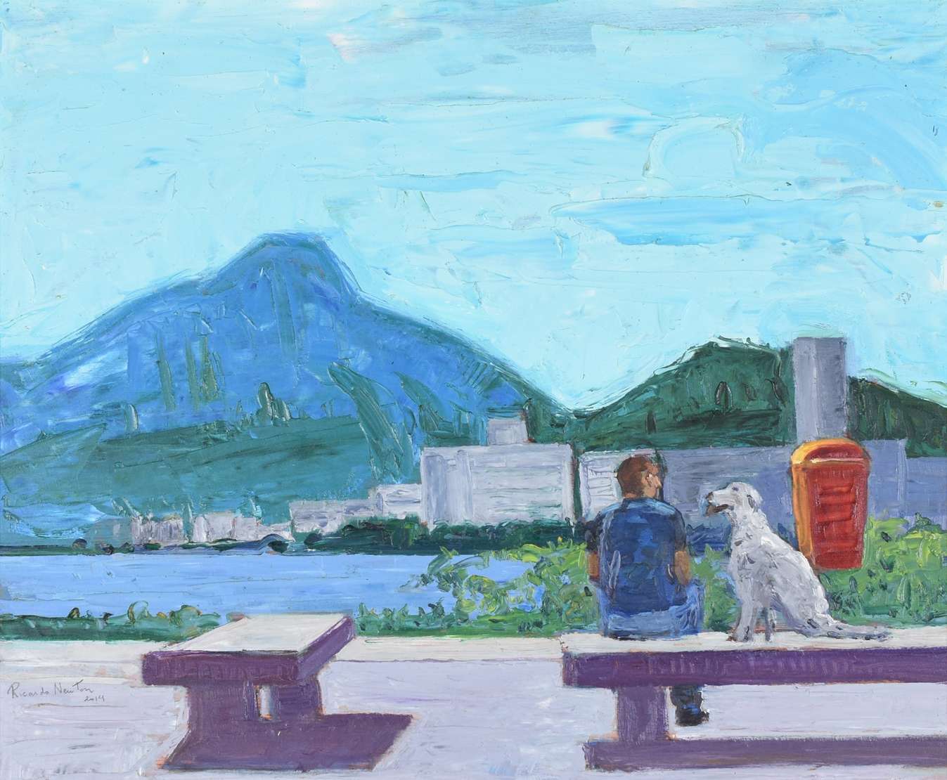 Par de quadros chineses decorados com figuras típicas sobre material calcáreo (com quebrados).