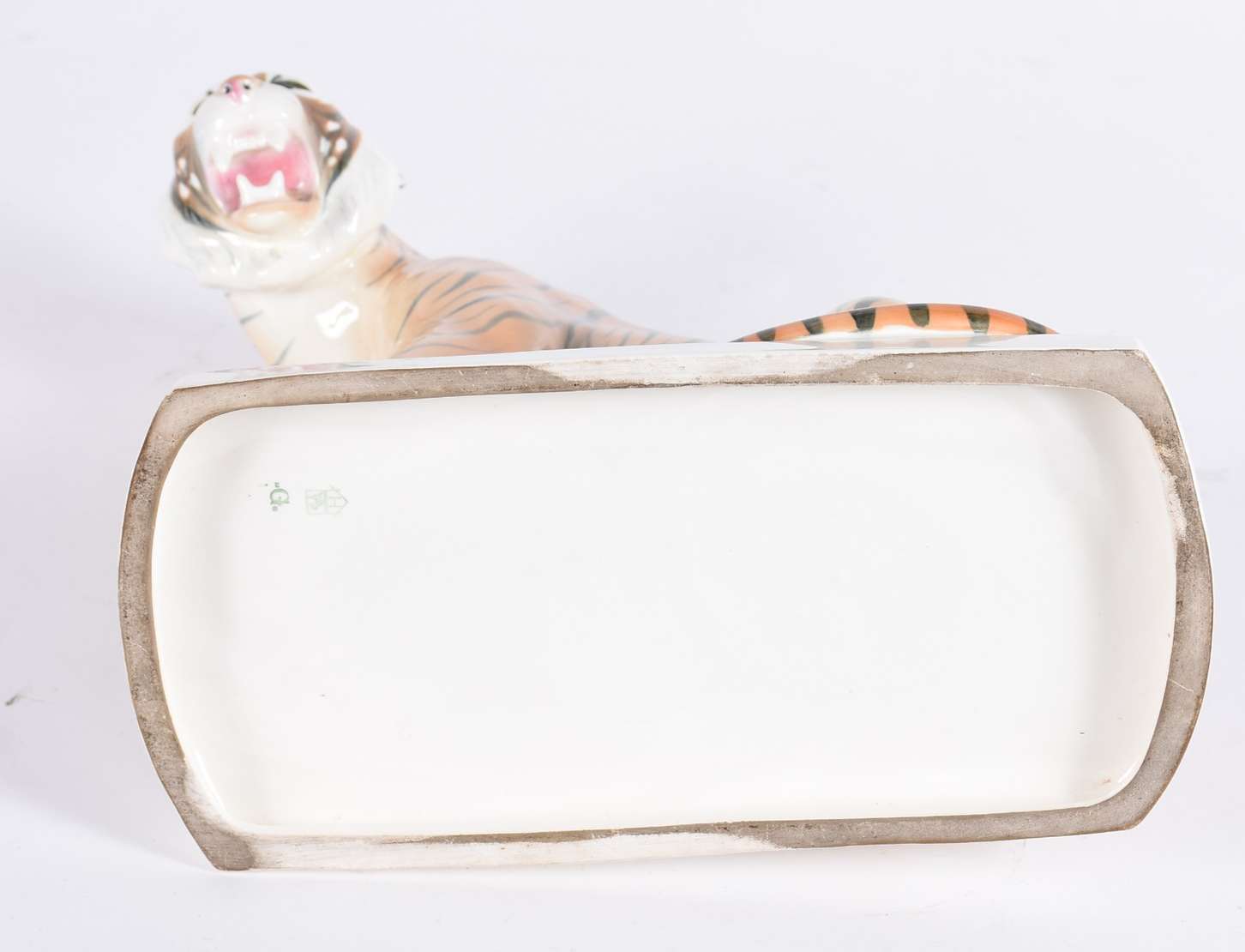 Duas peças de porcelana, sendo: grupo escultórico espanhol "Capo di Angelo" representando gueixa com criança e placa ...