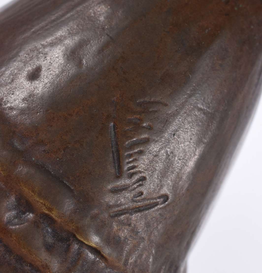 Escultura de petit bronze D'Aprés Moreau. (altura 60 cm). Acompanha coluna de alabastro medindo 94 cm de altura e tam...