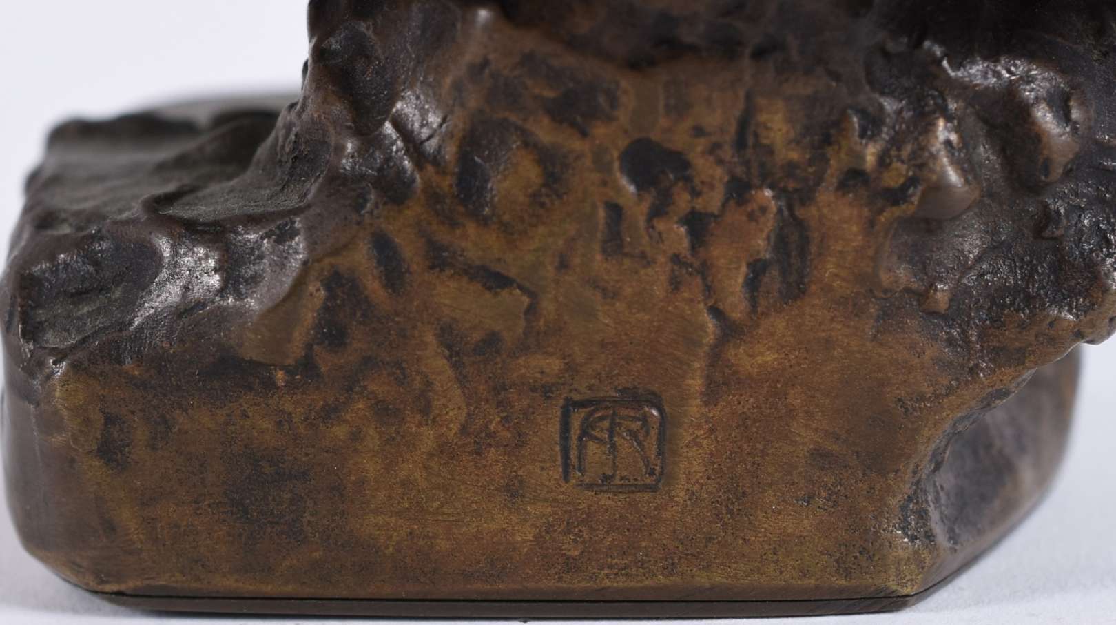 Escultura de porcelana policromada representando tigre. Marca do fabricante na base.
