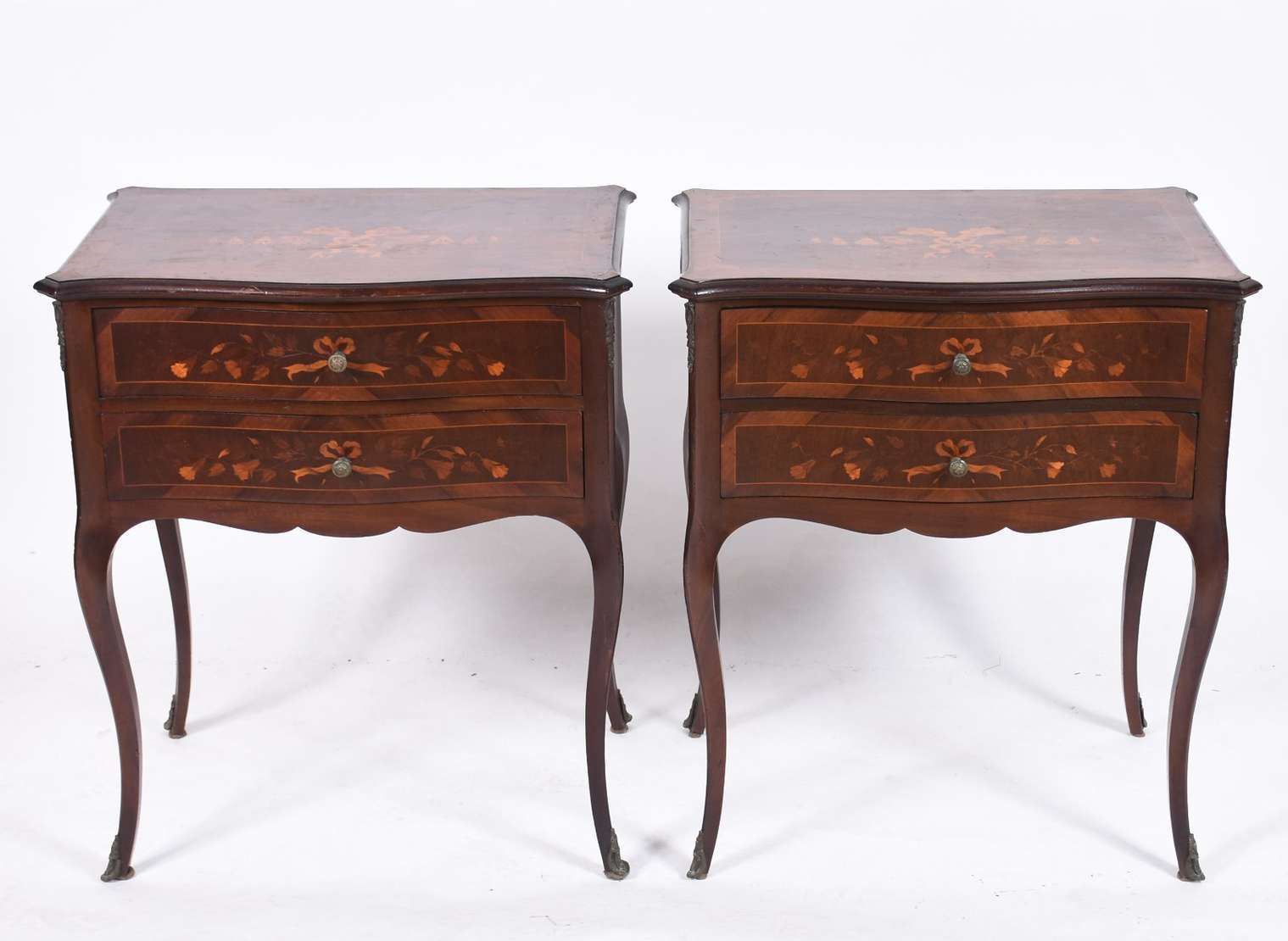 Cômoda de madeira nobre parquetada, estilo ingles, com 3 gavetões e 2 gavetas, detalhes frisados, feitio semi bombé, ...