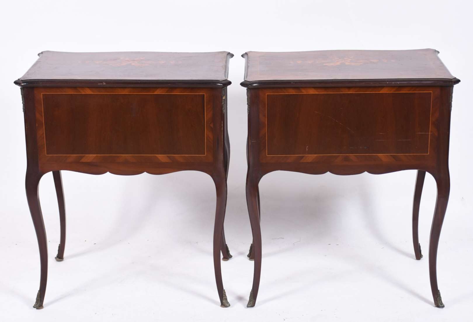 Mesa de encostar de jacarandá, saia recortada, pernas ligeiramente arqueadas com detalhes entalhados, tampo dividido ...
