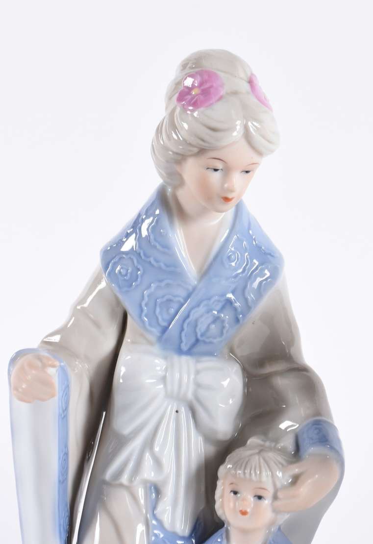 Escultura de porcelana policromada representando tigre. Marca do fabricante na base.