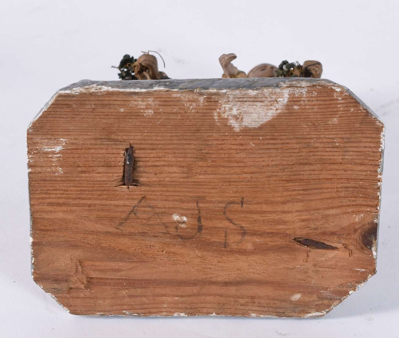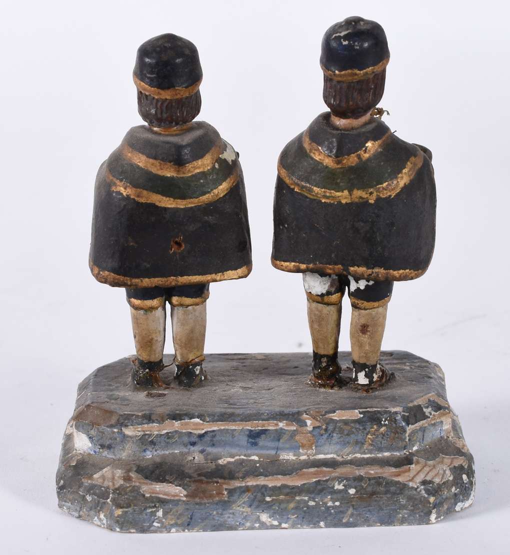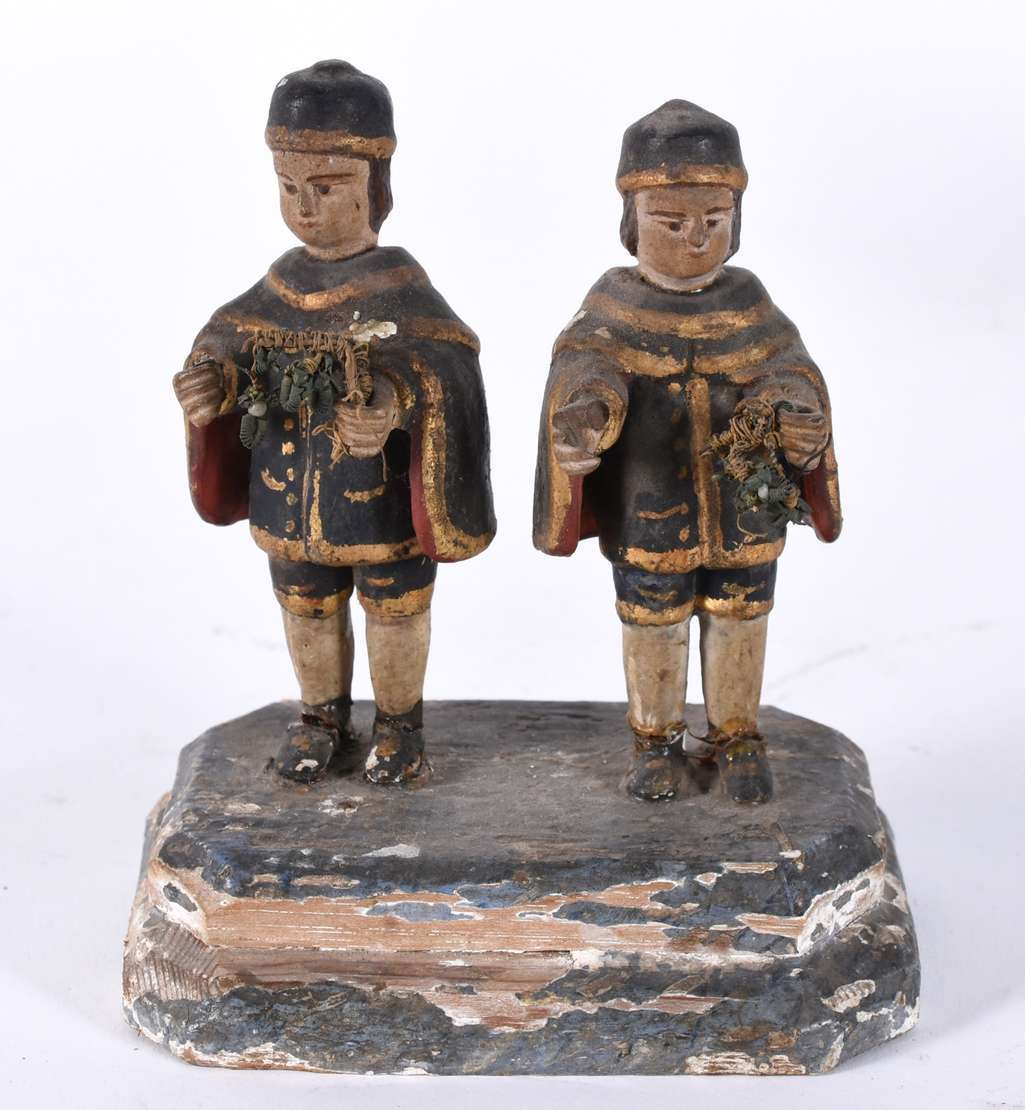 Nossa Senhora com menino - Imagem espanhola de madeira entalhada. Marcada na base, Barcelona, julho 1989. Pequenos de...