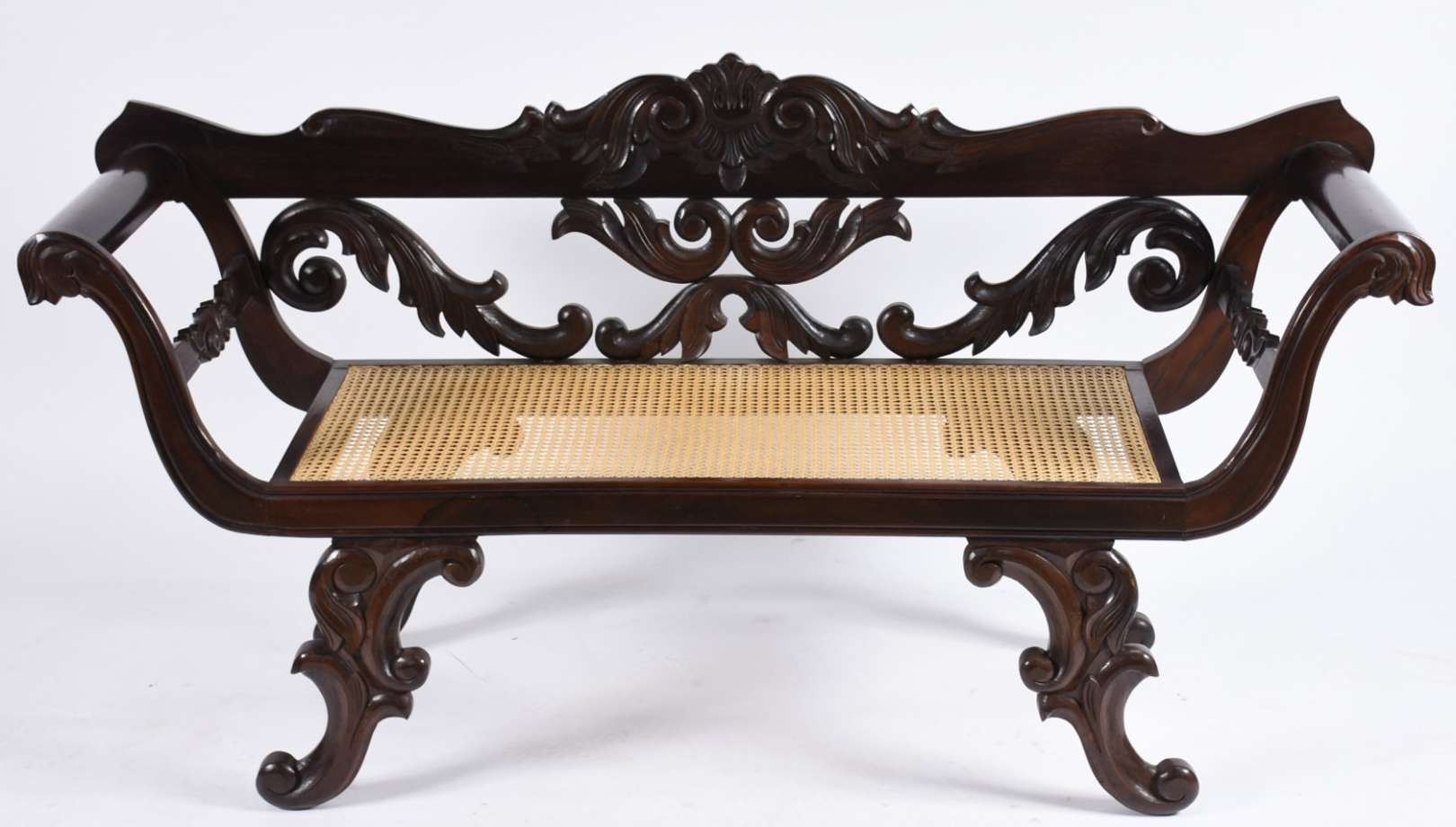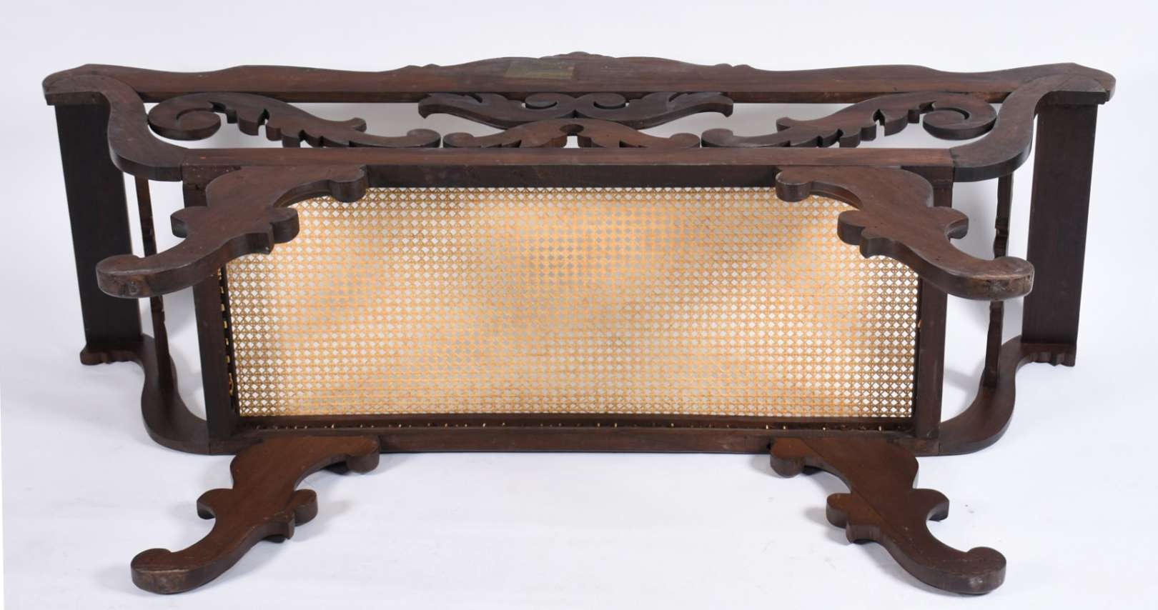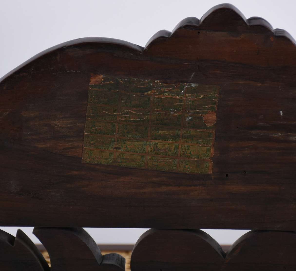 Mesa de encostar de jacarandá, saia recortada, pernas ligeiramente arqueadas com detalhes entalhados, tampo dividido ...