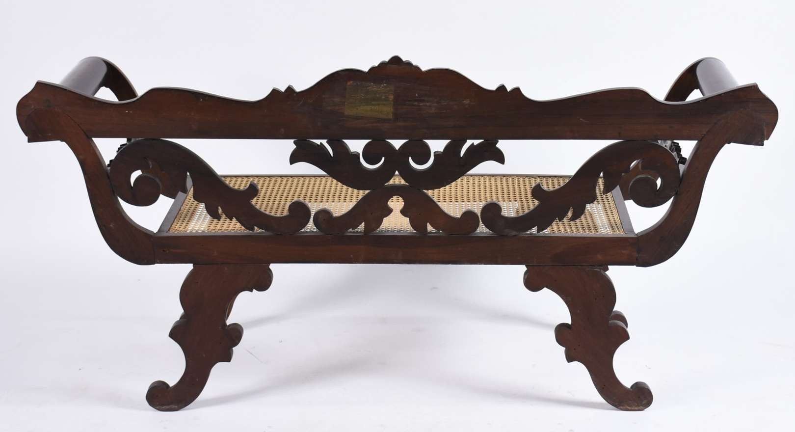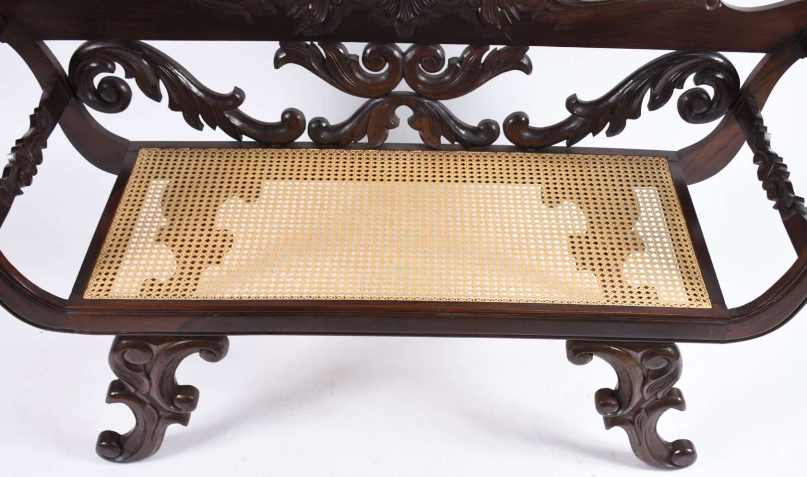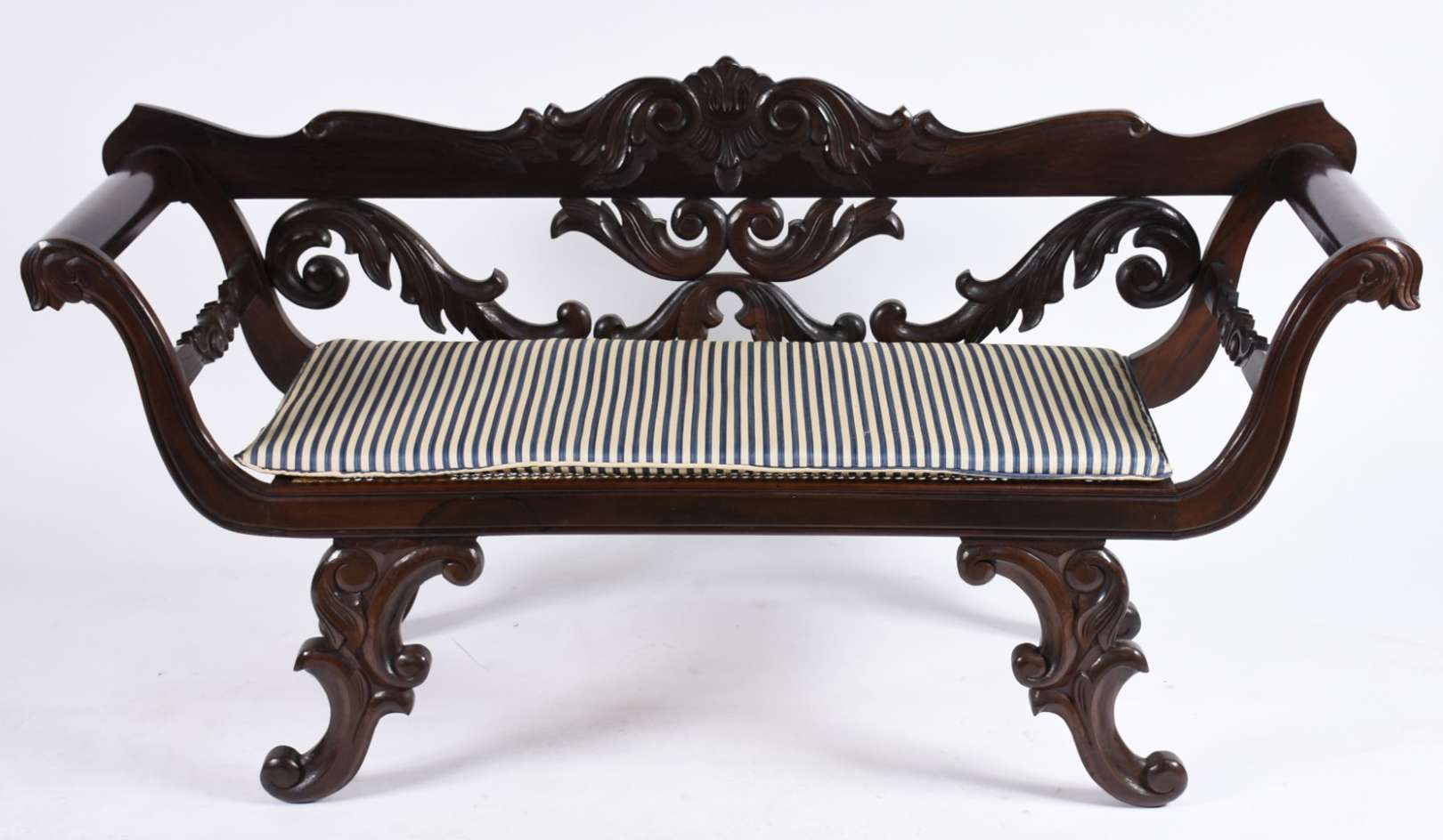 Mesa de encostar de jacarandá, saia recortada, pernas ligeiramente arqueadas com detalhes entalhados, tampo dividido ...