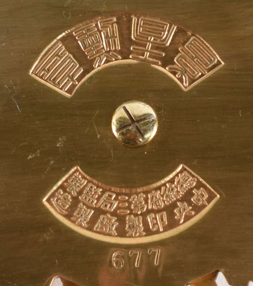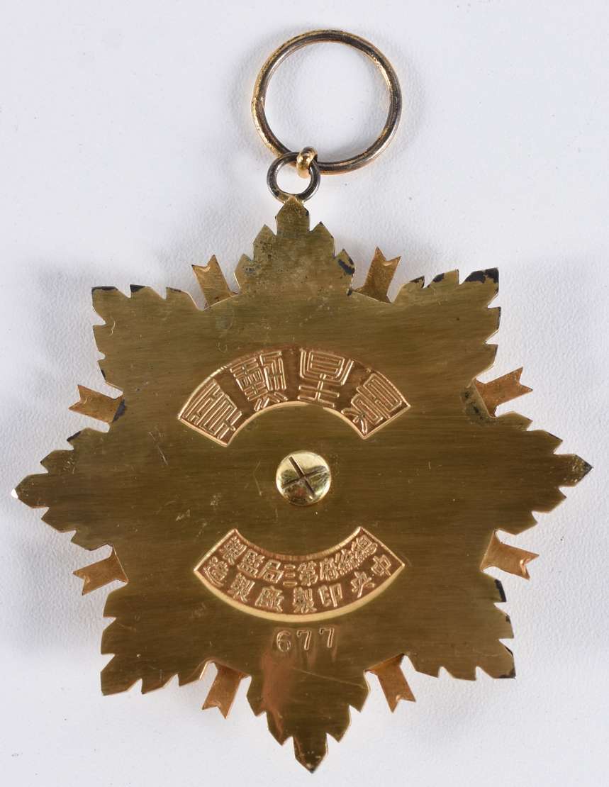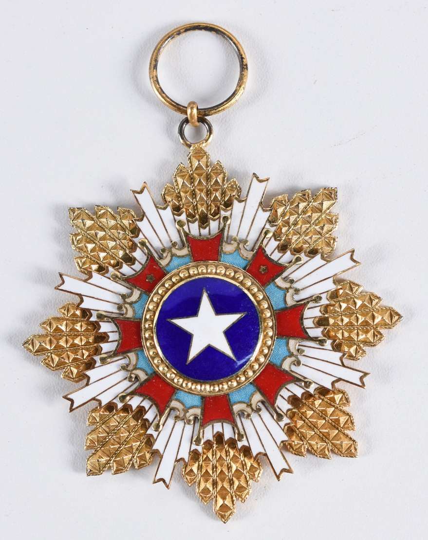 Duas comendas de prata de lei em tamanhos diferentes na forma de cruz esmaltada em vermelho.