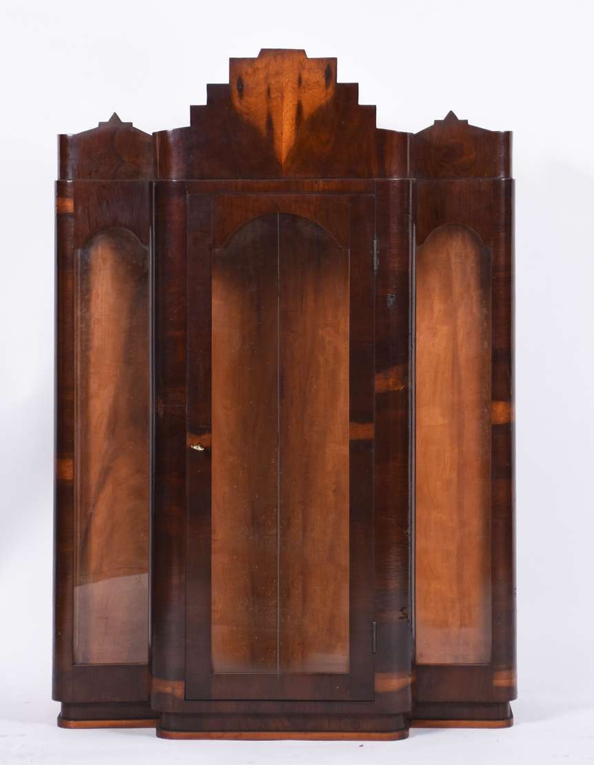 Relógio americano de parede com caixa de madeira trabalhada. Máquina parada.
