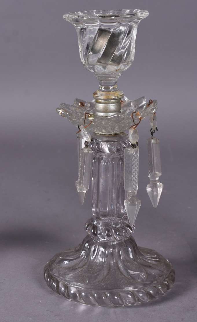 Pequeno lustre de metal e cristal.