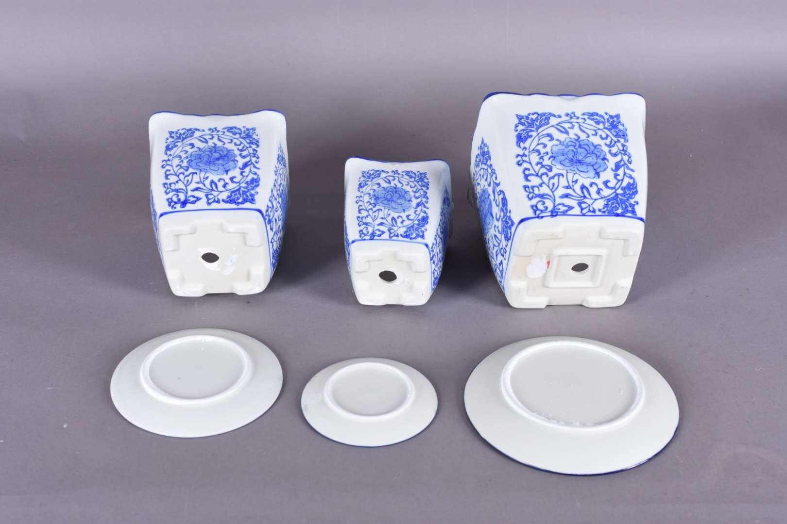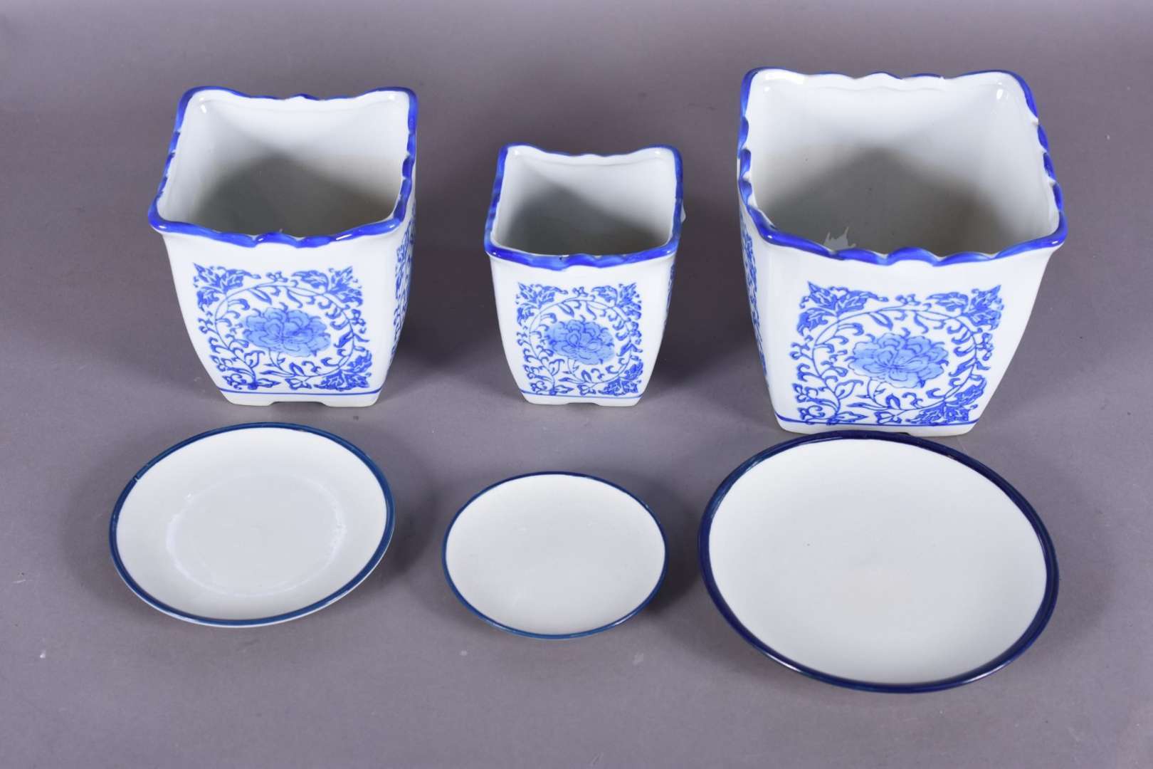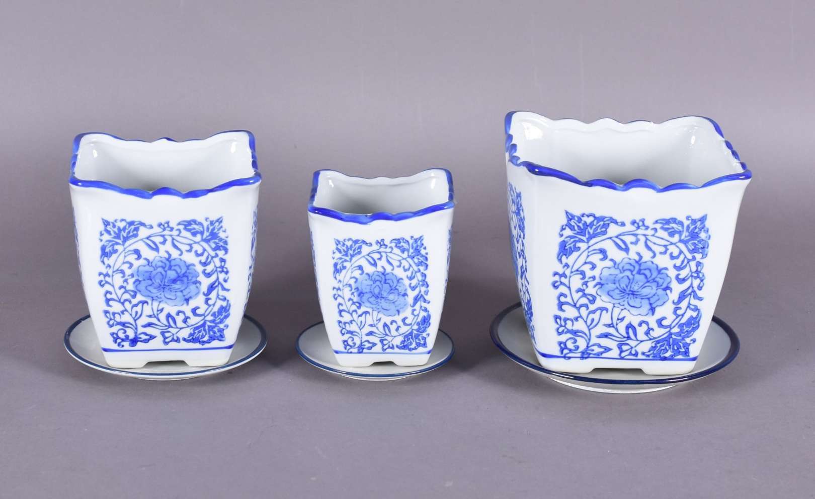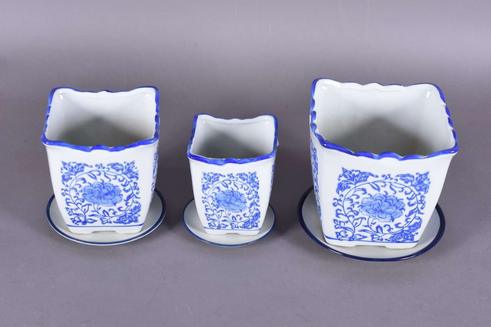 Cachepot de porcelana azul no feitio oval com aves em policromia.
