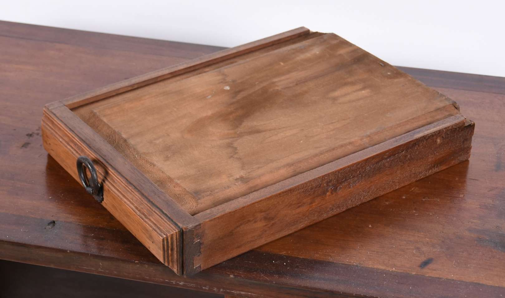 Antigo Oratório de madeira nobre, duas portas ogivais tendo na parte interna pinturas em policromia. Arremate superio...