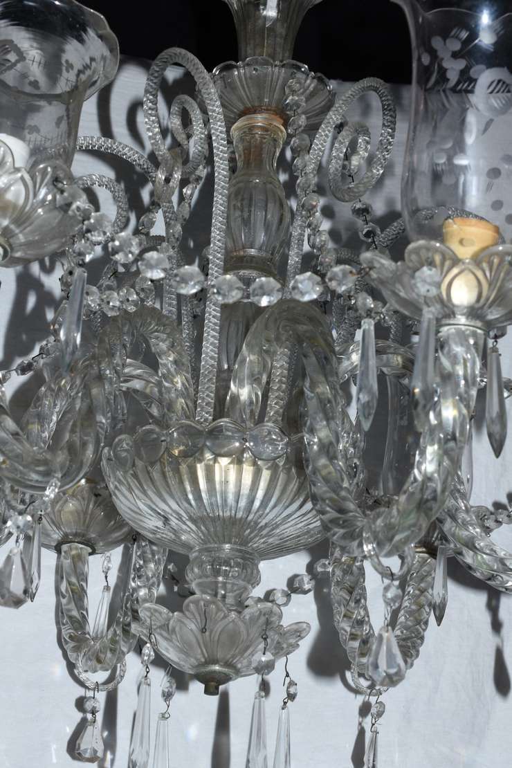 Par de antigos castiçais de cristal europeu com bordas acordoadas, pingentes lapidados (faltando alguns).