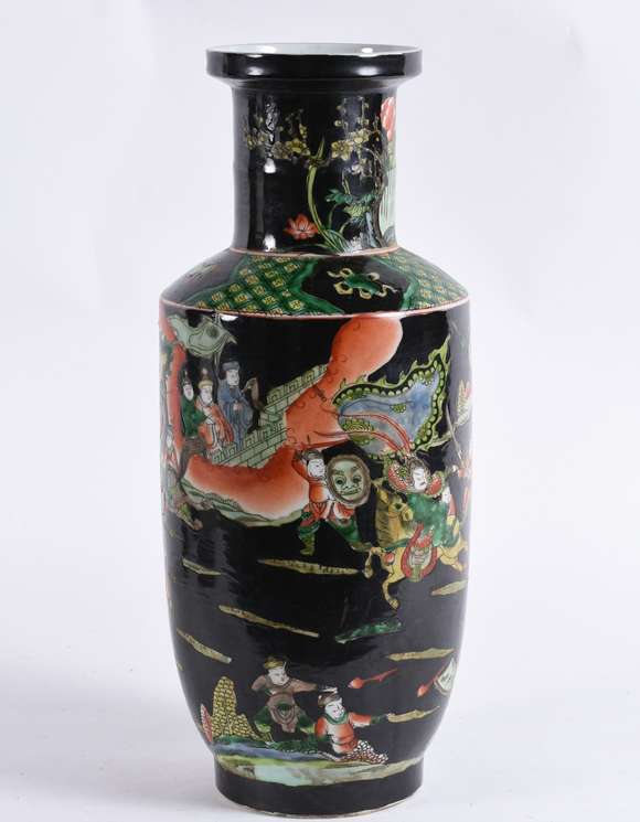 Vaso de formato balaústre em porcelana chinesa, decorado emesmaltes policromados da Famille Verte, apresentando cena ...