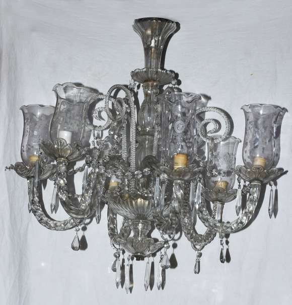 Lustre de cristal para 6 luzes, pingentes lapidados.