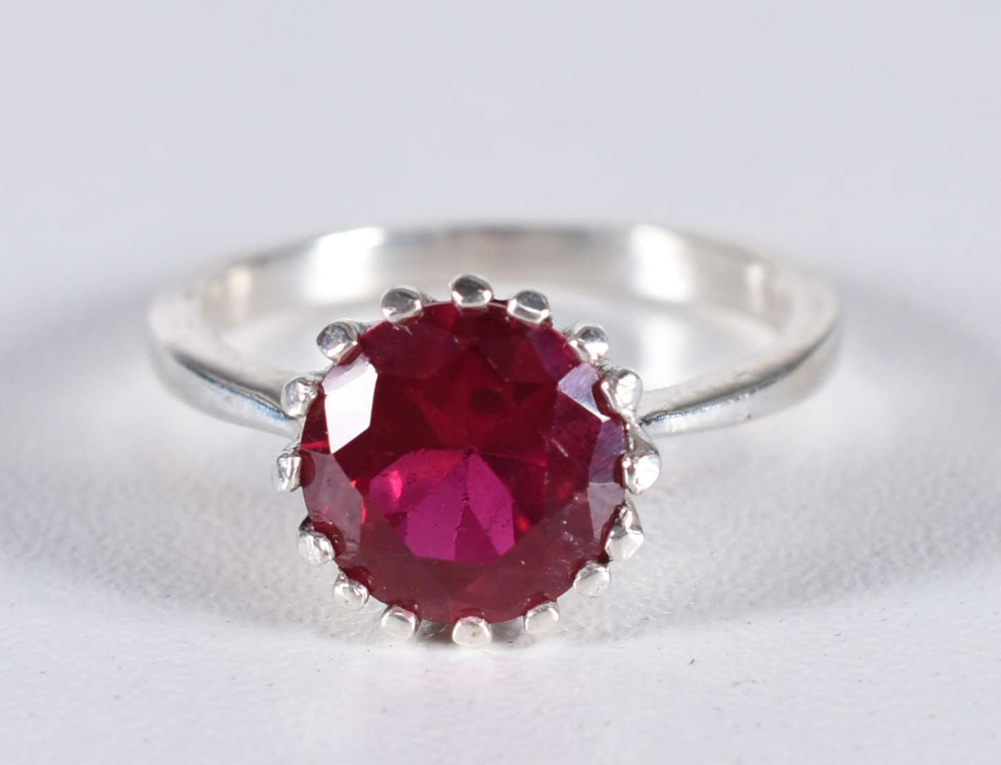 Anel de ouro baixo com pedra ametista de 4 mini brilhantes, aro 15 (Por motivos de segurança a peça não se encontra n...