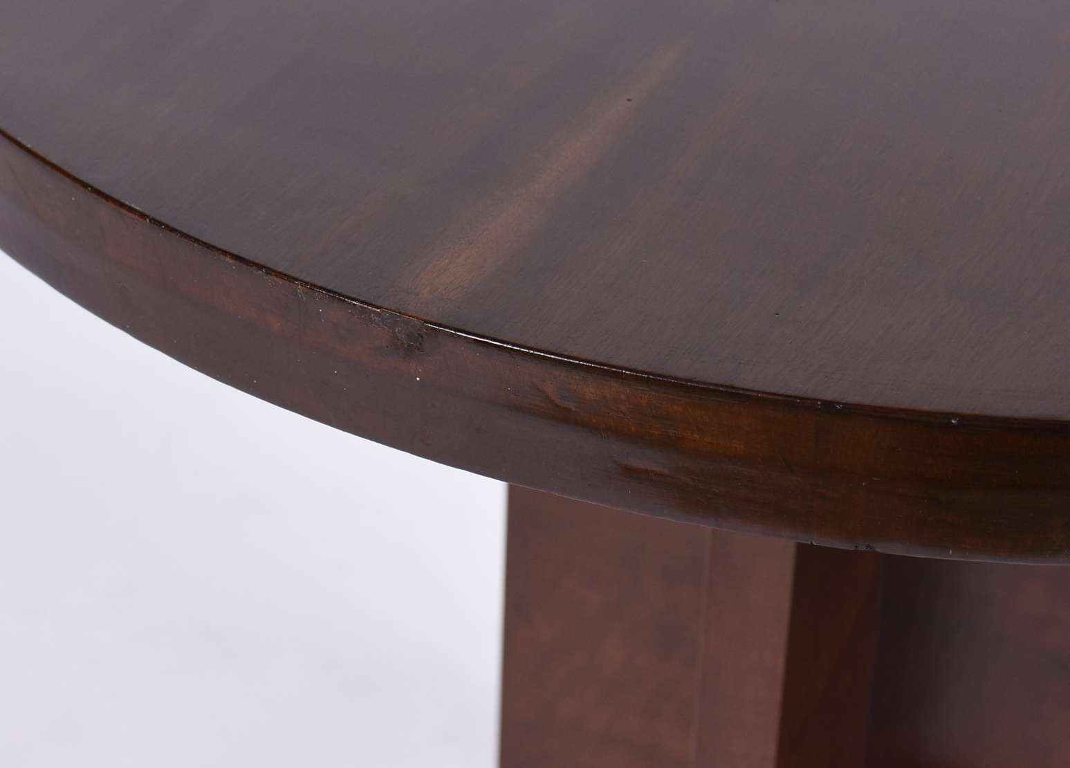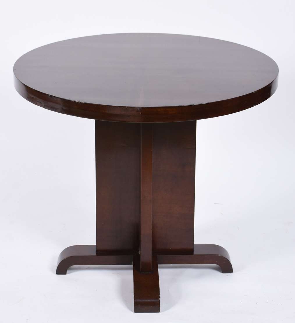 Mesa de madeira nobre com uma gaveta, pernas retas.