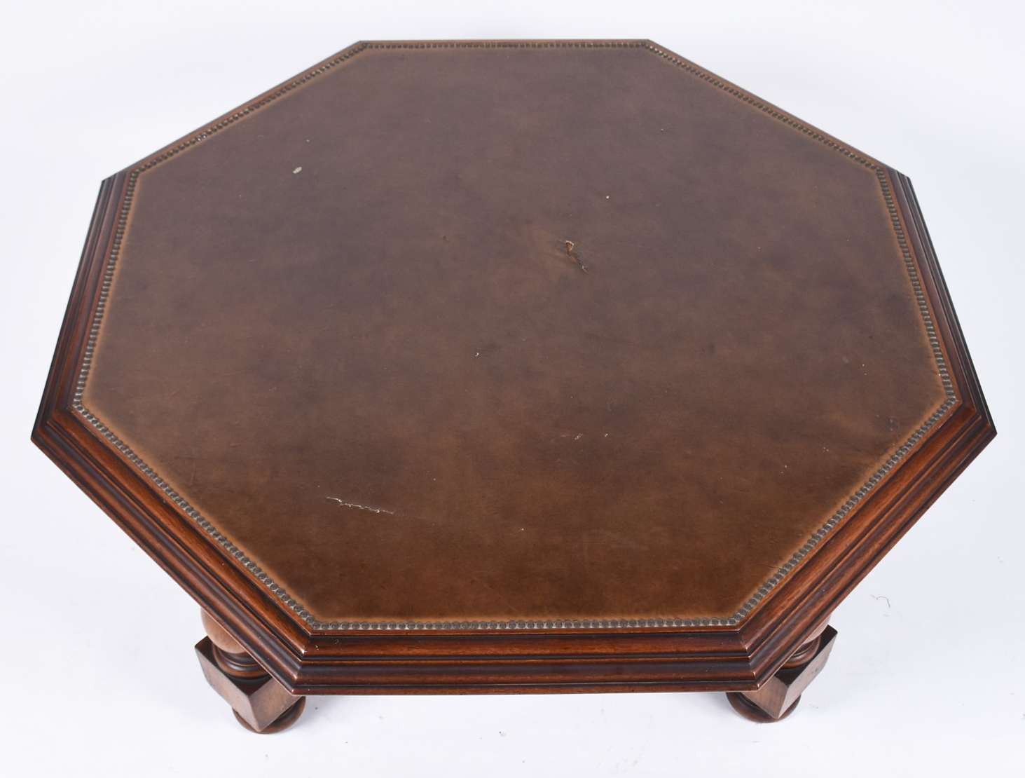 Mesa de madeira nobre com uma gaveta, pernas retas.