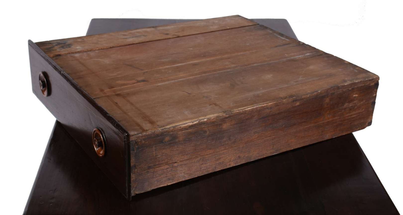 Aparador de madeira nobre com tampo de mármore e platô inferior.