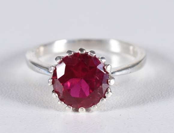 Anel de prata com pedra vermelha, aro 21 (Por motivos de segurança a peça não se encontra na loja)