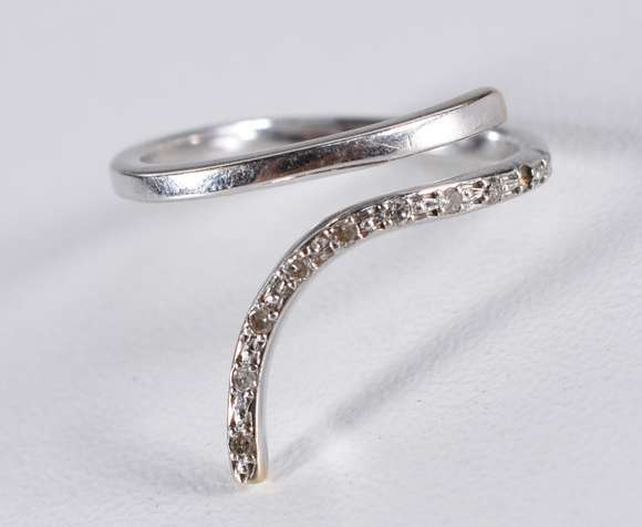 Anel de ouro branco em forma de cobra cravejado de brilhantes, aro 14 (Por motivos de segurança a peça não se encontr...