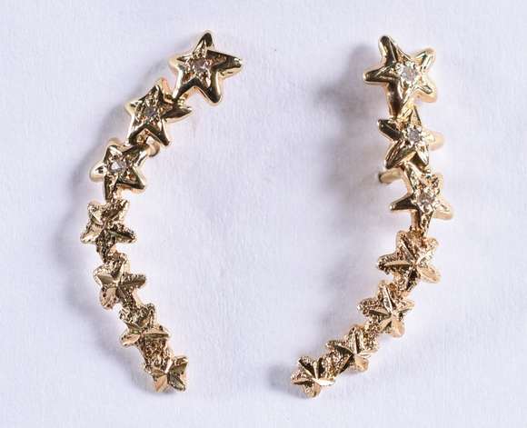 Par de brincos de ouro 18k contraste 750 com estrelinhas e brilhantes (Por motivos de segurança a peça não se encontr...