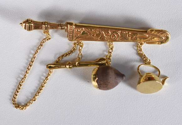 Broche em prata com vermeil feitio "facão" com adereços na representação típica das jóias de crioula. Brasil-Bahia s...