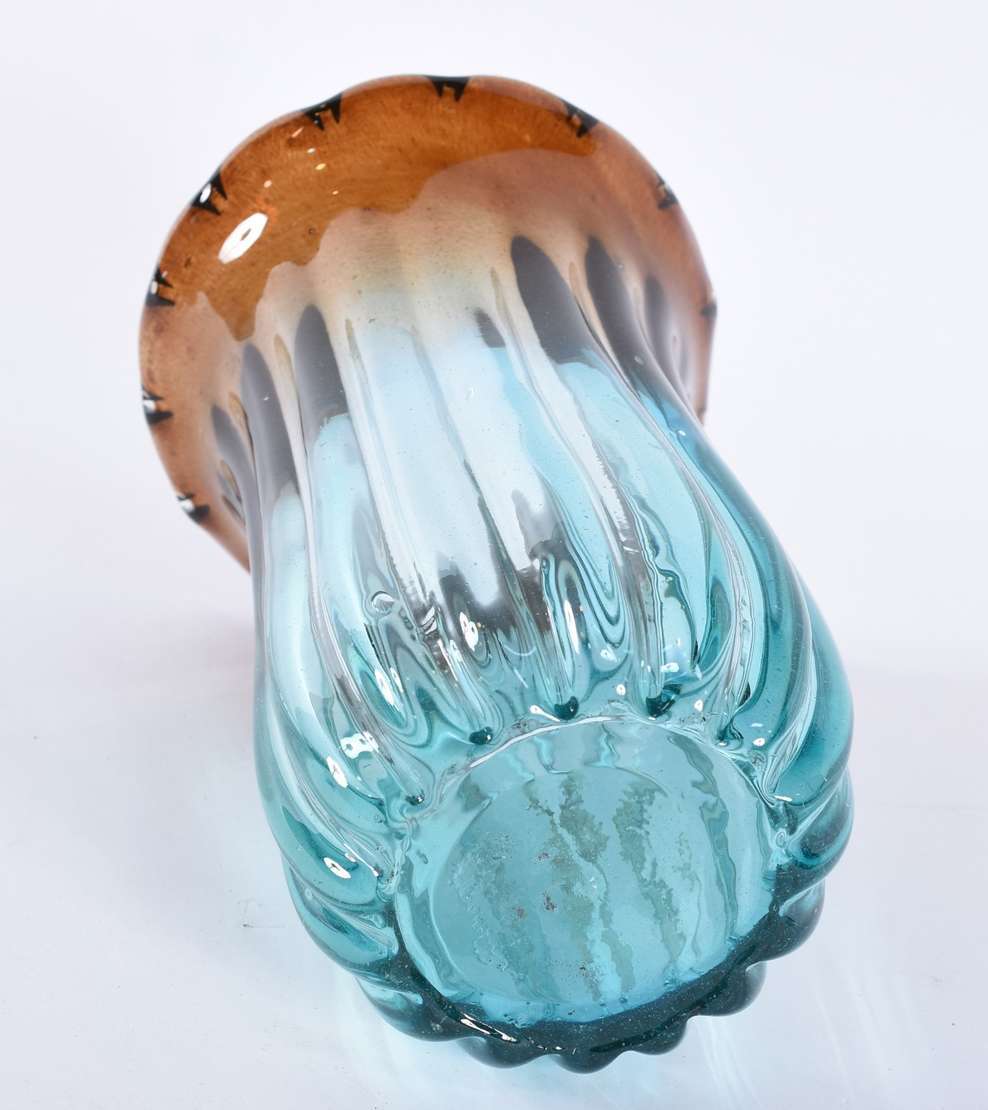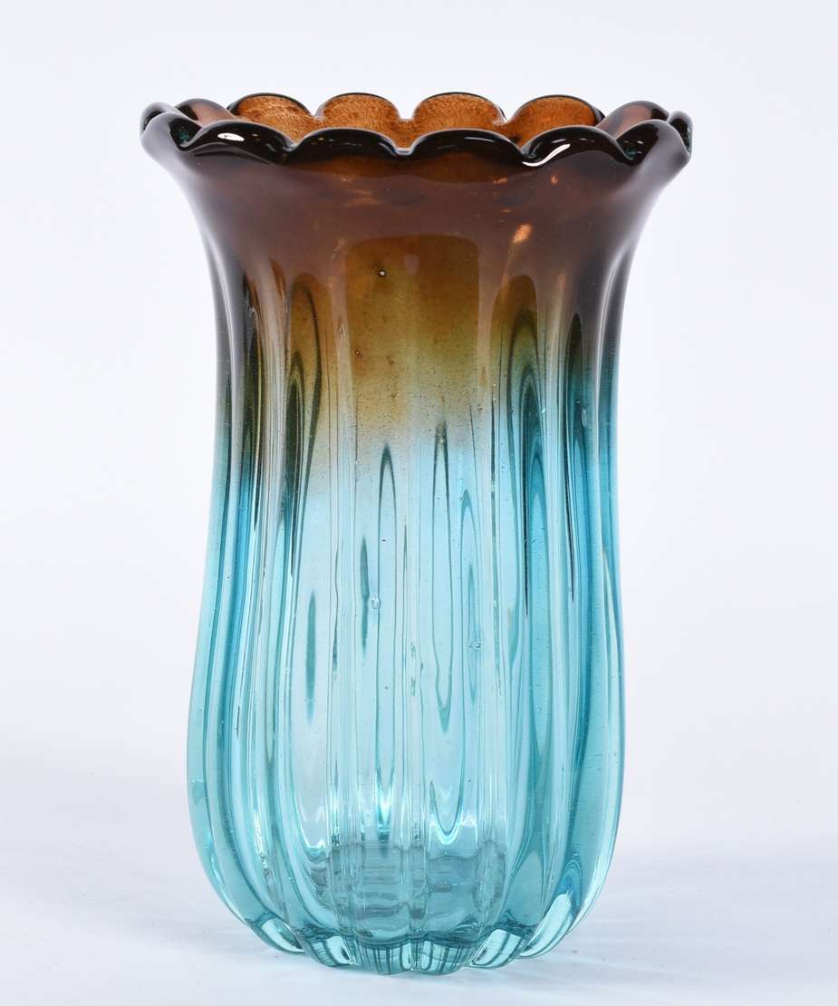 Vaso de vidro decorativo na cor azul com pó de ouro.