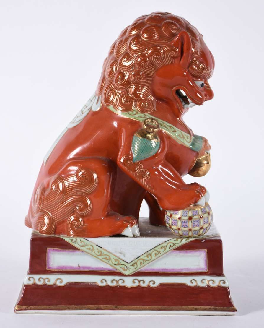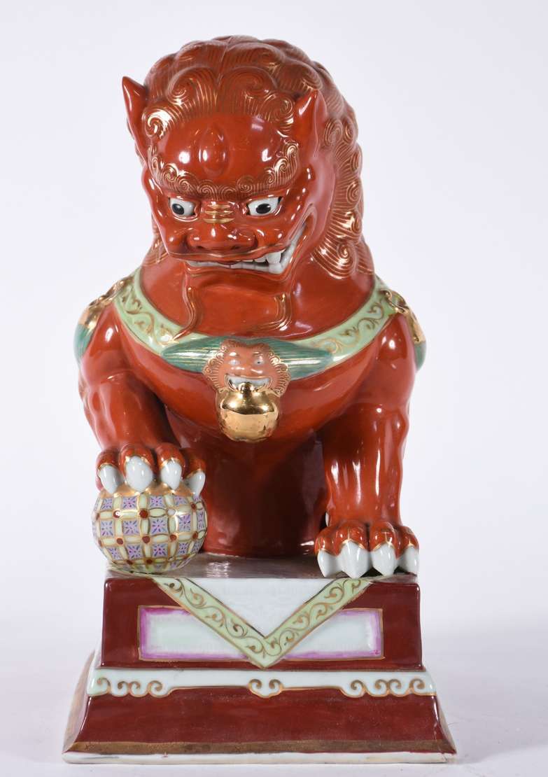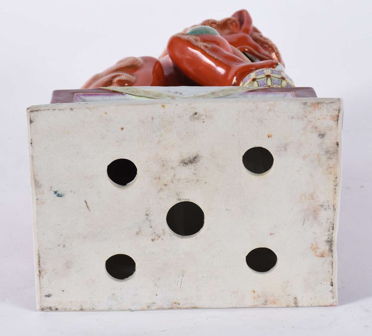 Estatueta de porcelana europeia policromada representando figura feminina com coluna (com defeitos e restauros).