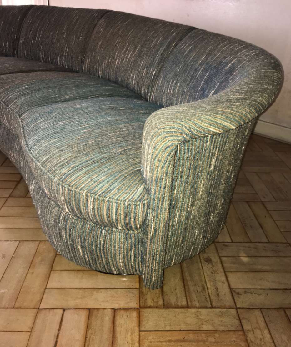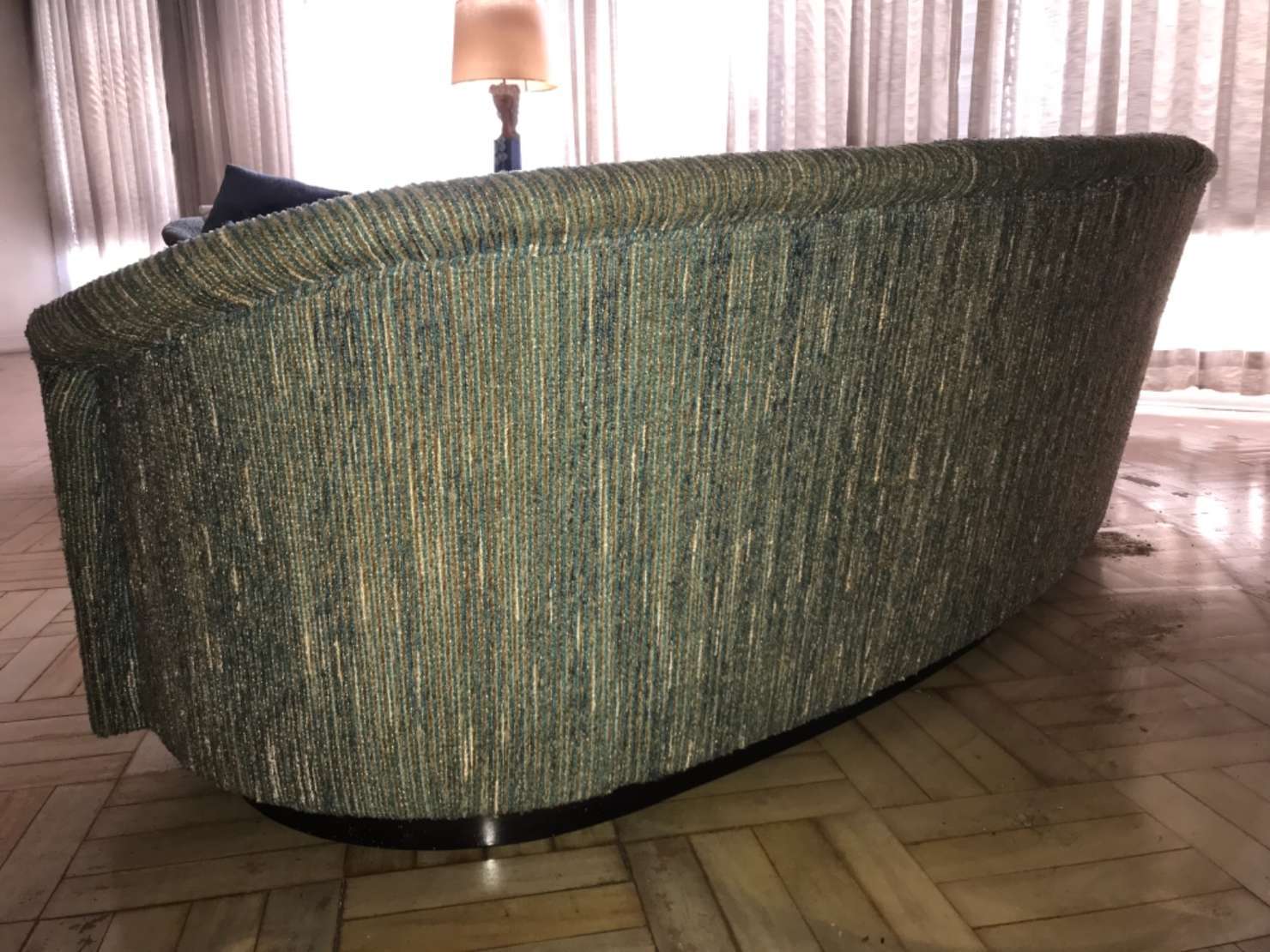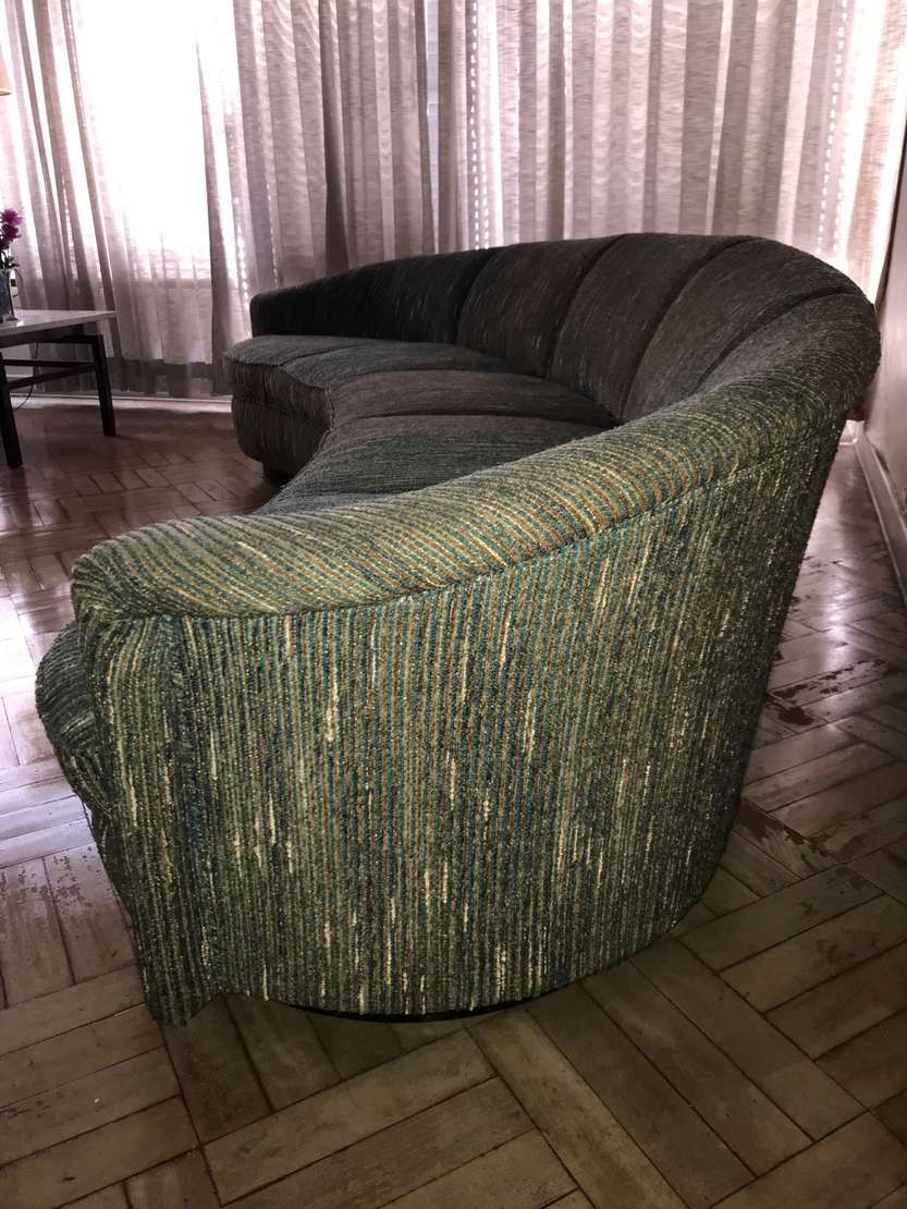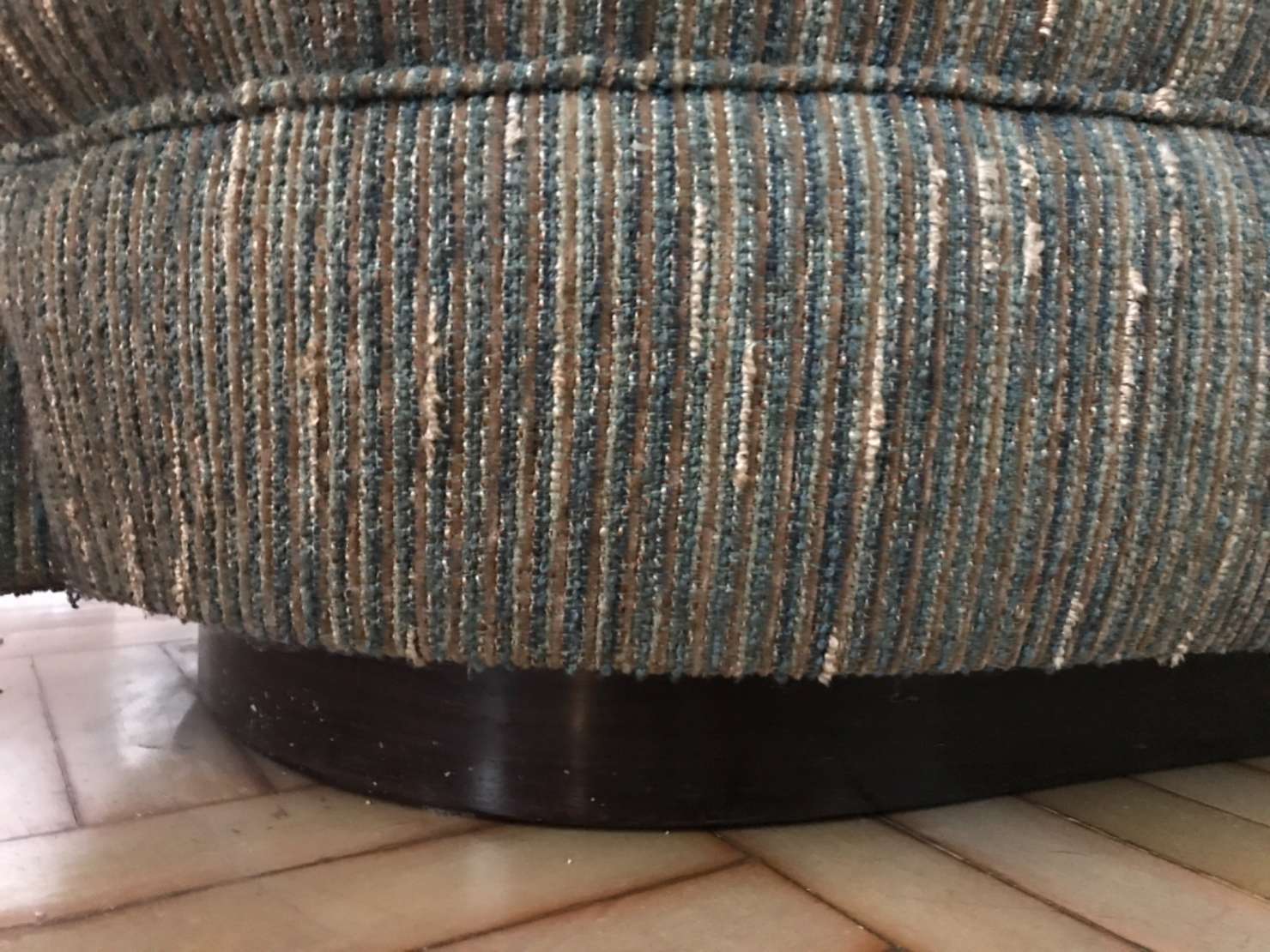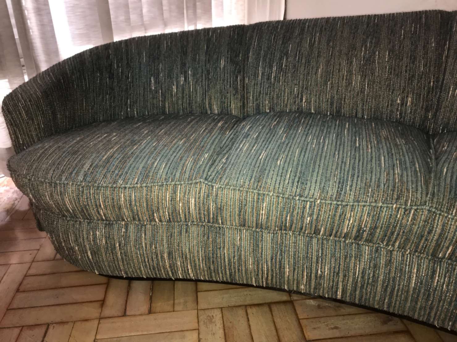 Par de poltronas com bases de metal e estofamento forrado com tecido mesclado cinza, com degastes. Anos 60. Retirada ...