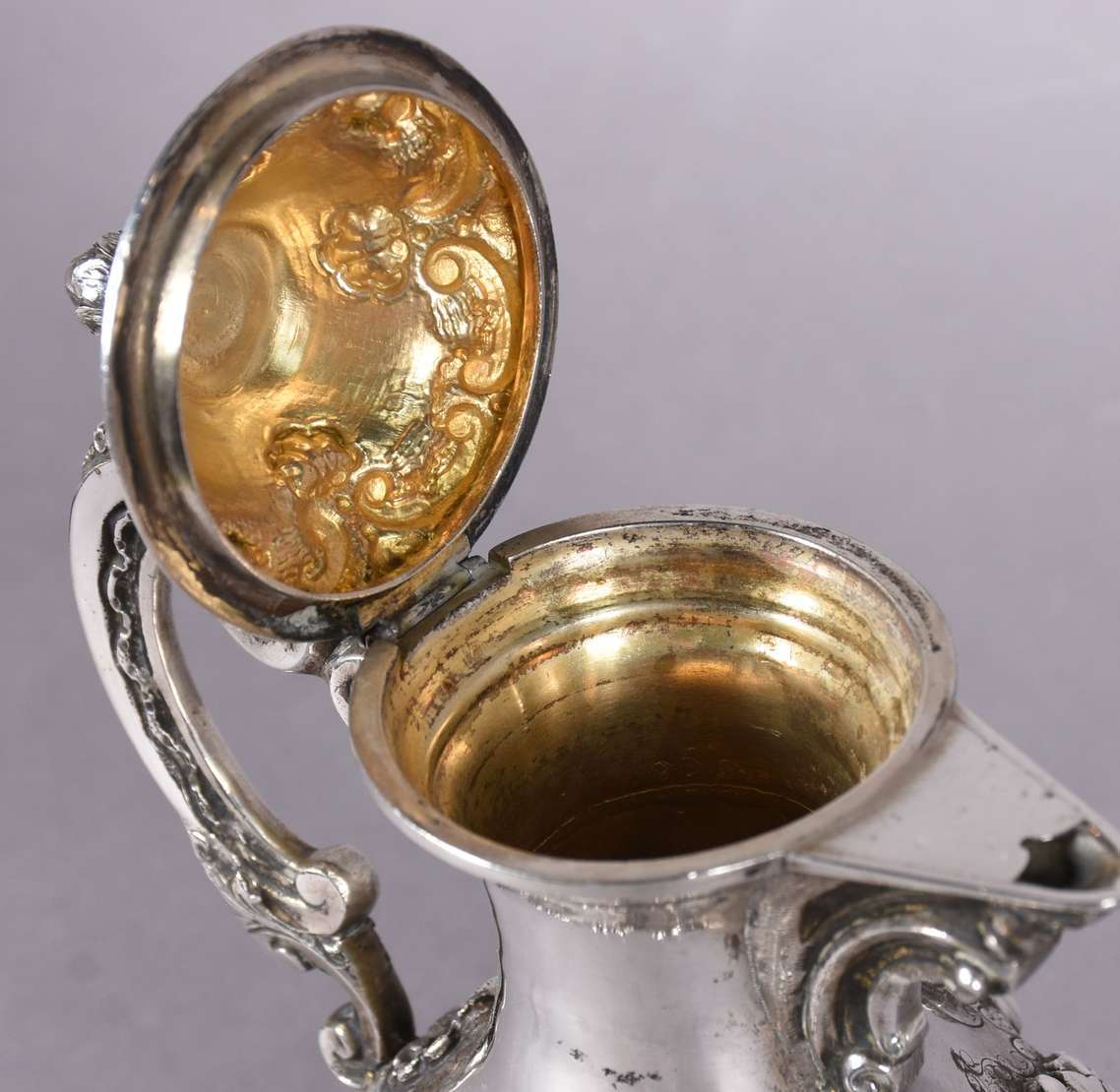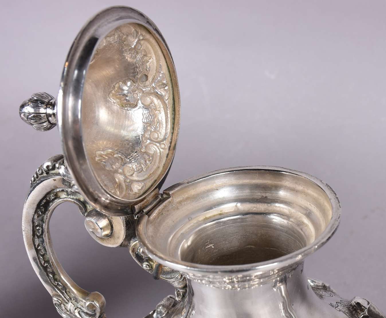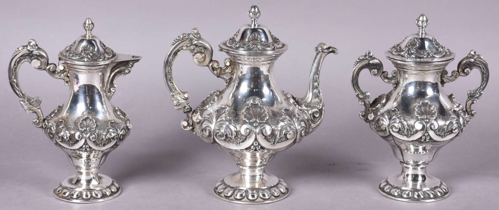 Baixela para chá e café de prata portuguesa contrastada, composto de: 2 bules, 2 açucareiros e leiteira. Bases em gom...