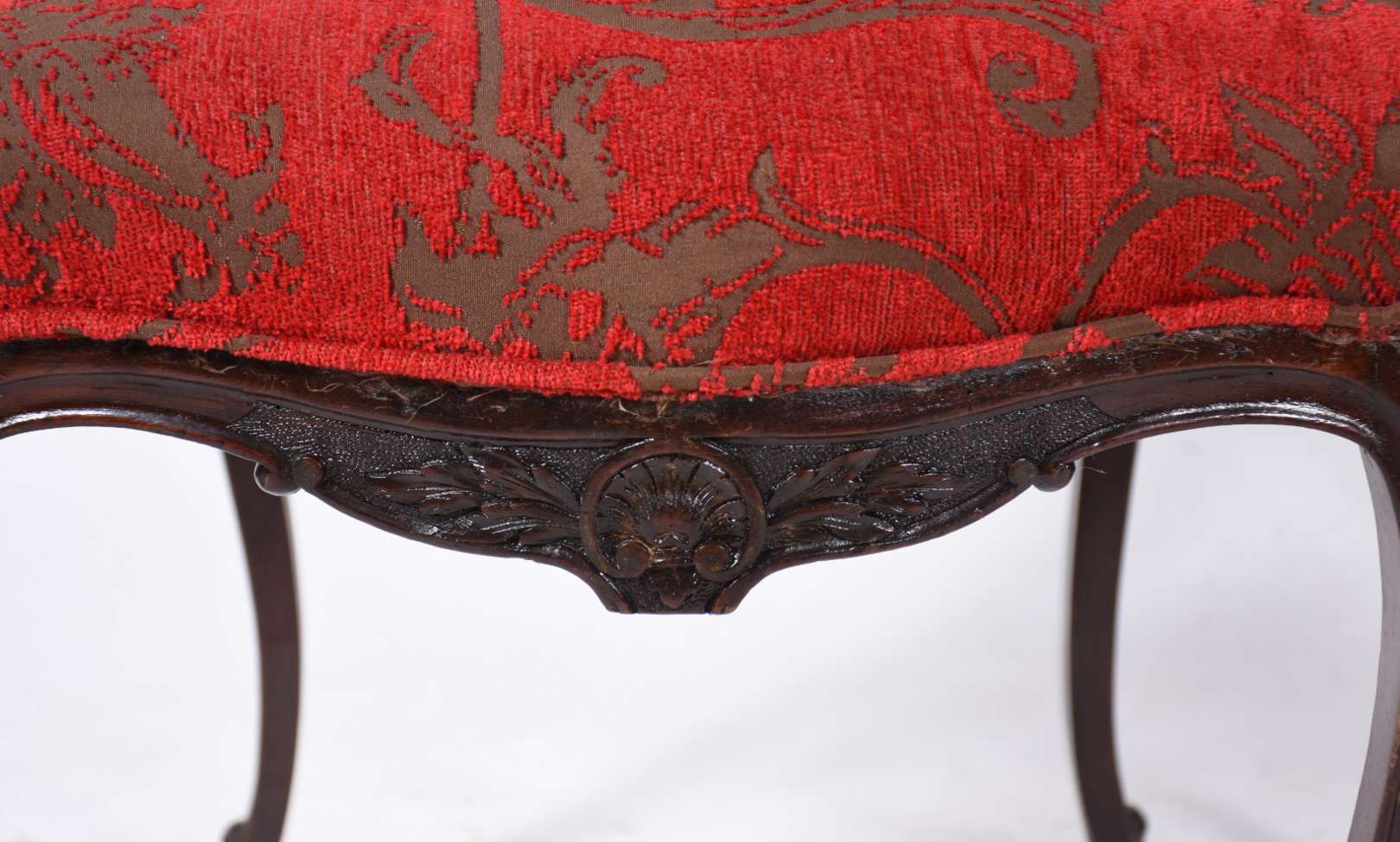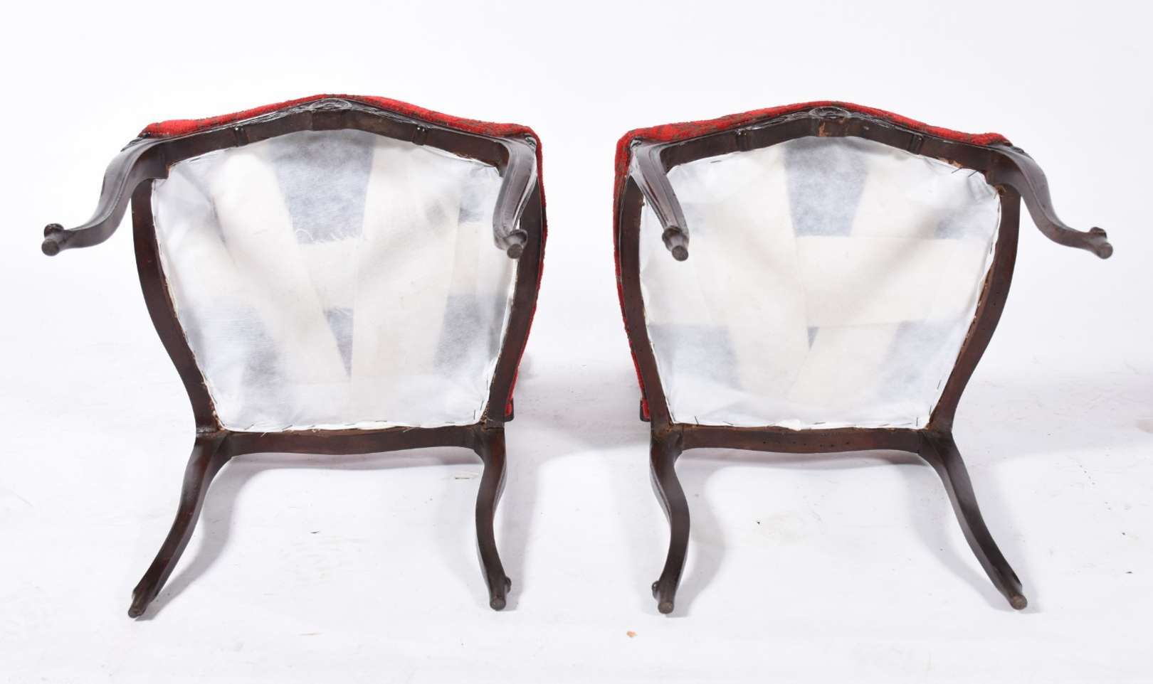 Poltrona bergere estofada e forrada com tecido na cor vermelha. Tecido com desgastes, anos 60.