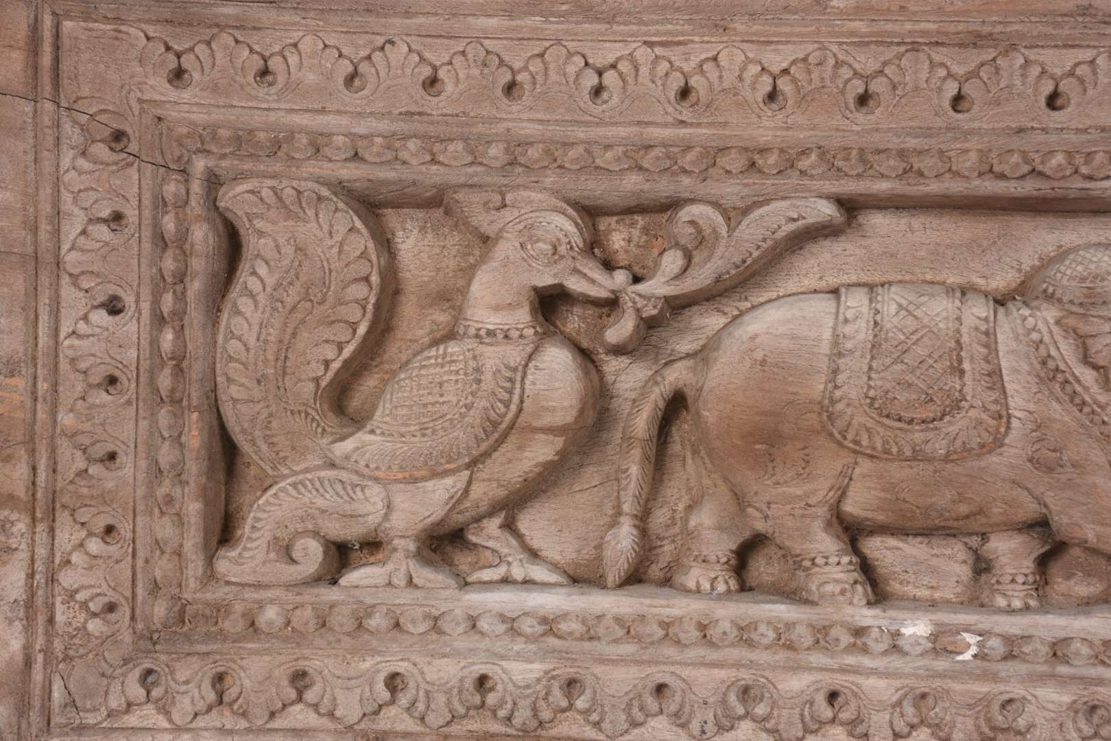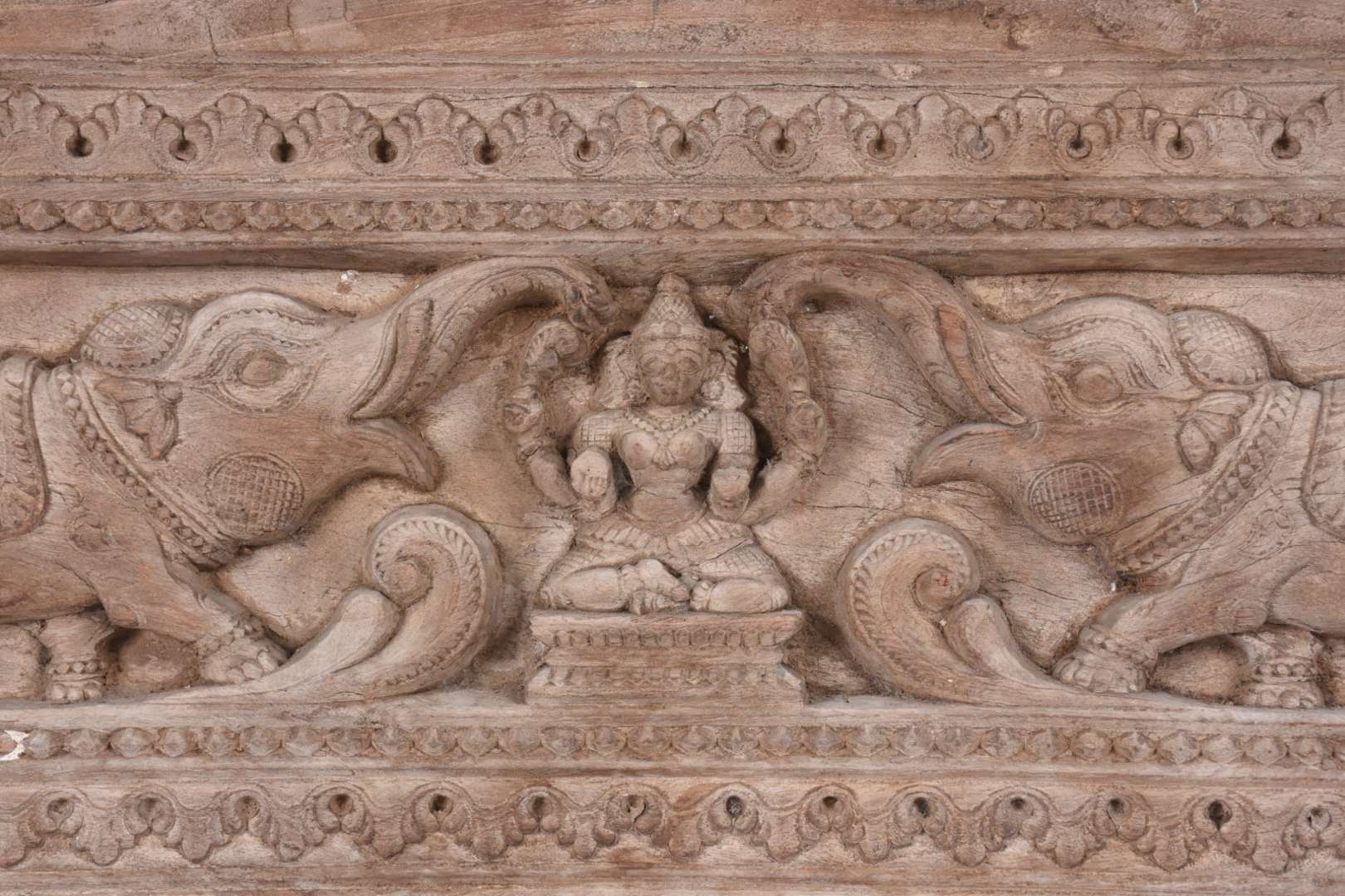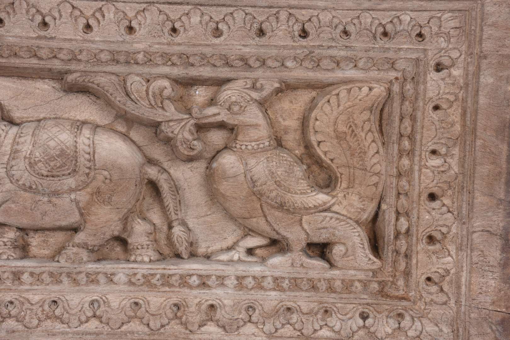 Banco oriental de madeira nobre, detalhes em metal dourado, almofada solta forrada com tapete.