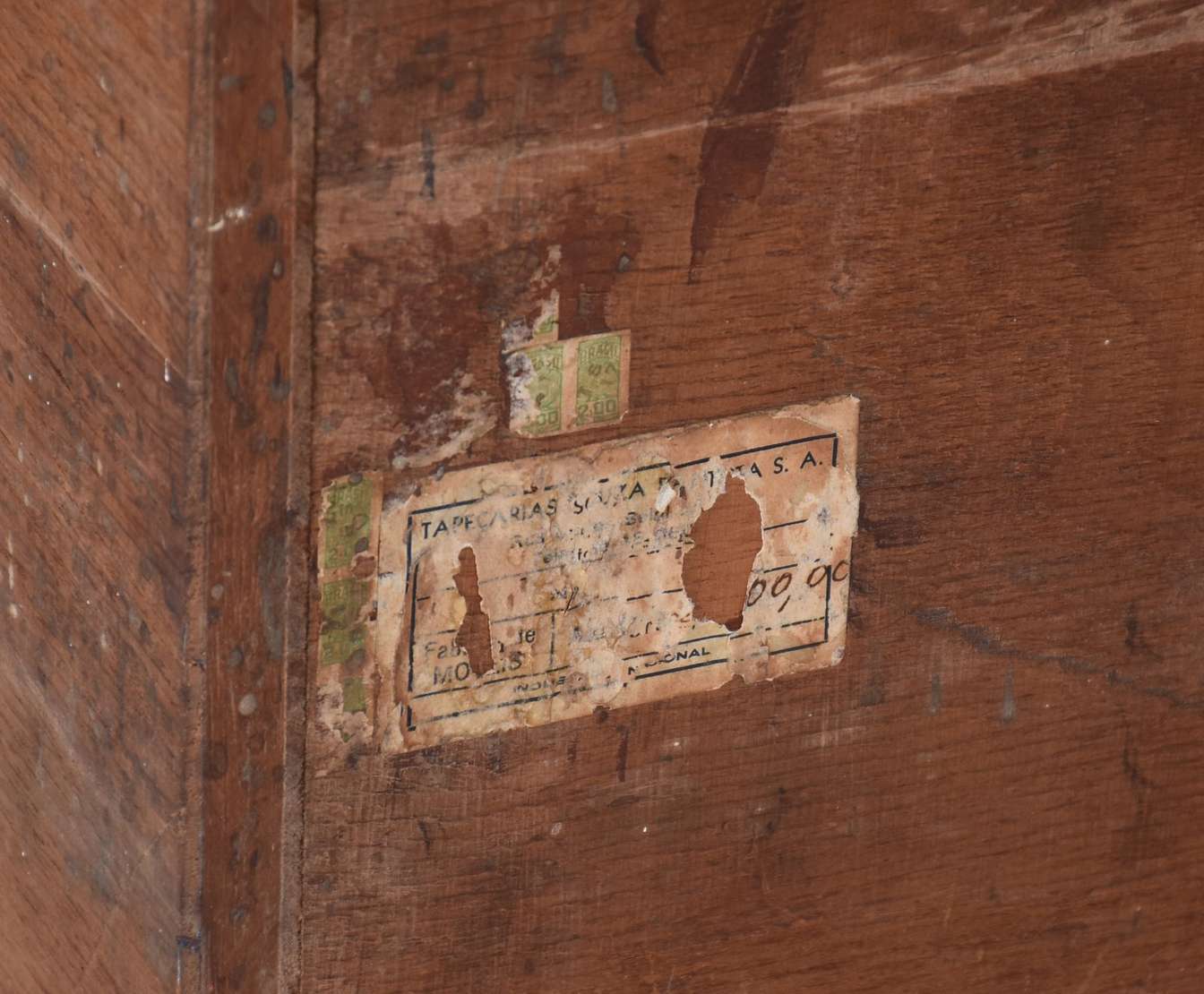 Mesa de jantar de madeira nobre, pernas cilíndricas torneadas, tampo de mármore. Acompanham 10 cadeiras com encostos ...