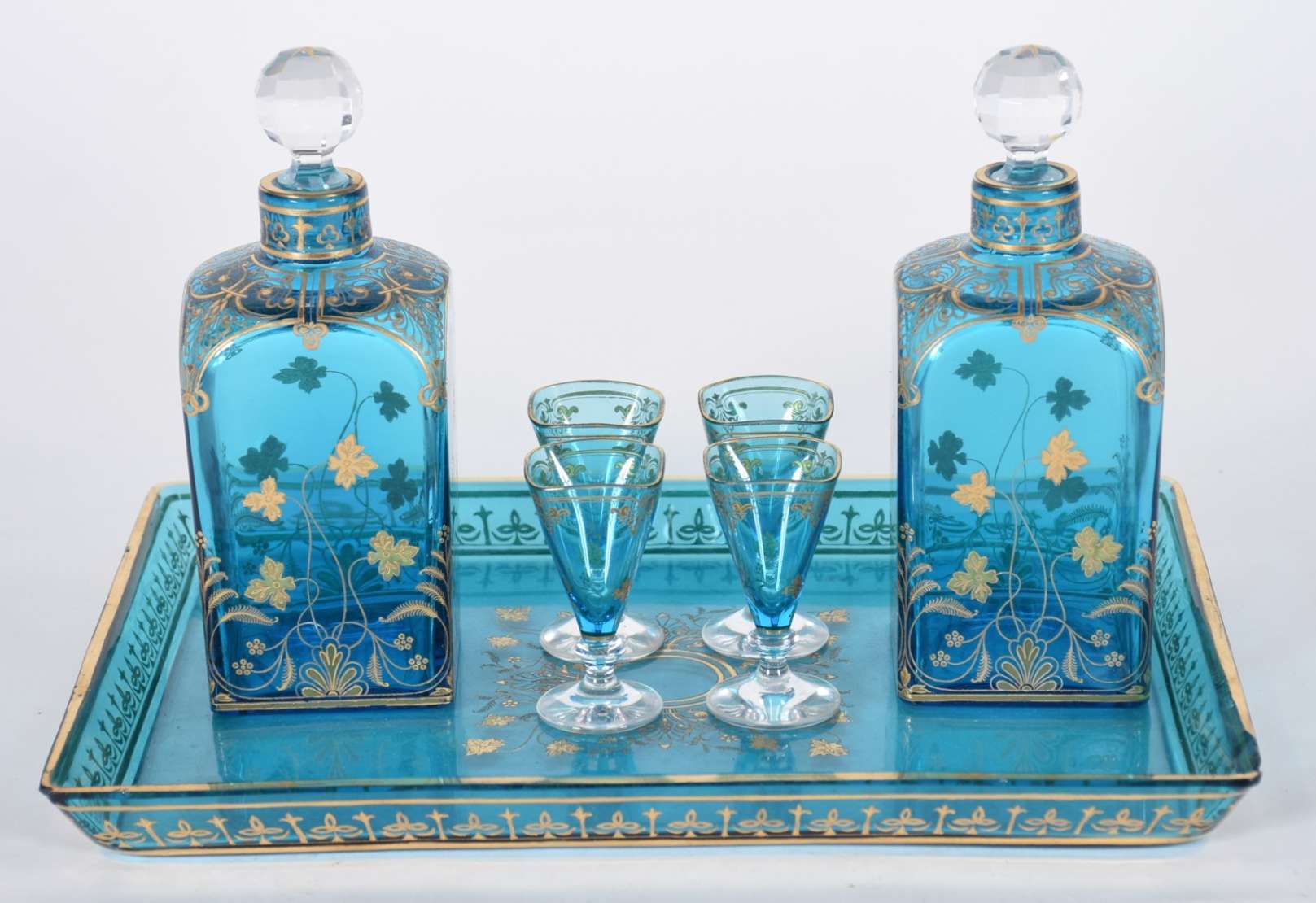 Belíssimo serviço de cristal frances Saint Louis, lavrado com guirlandas florais, composto de: 19 taças de pé alto na...