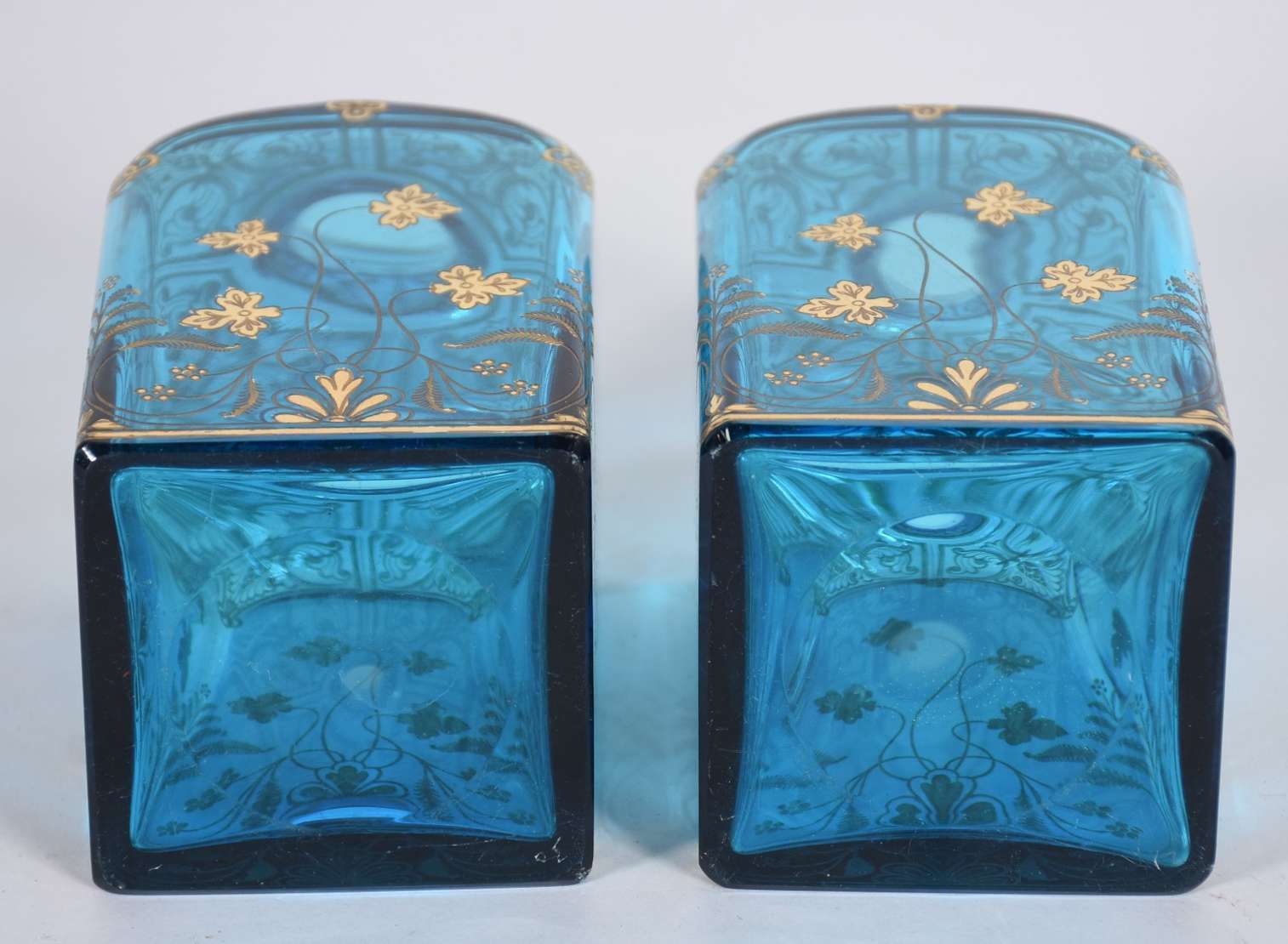 Par de compoteiras em demi cristal em gomos na cor azul.