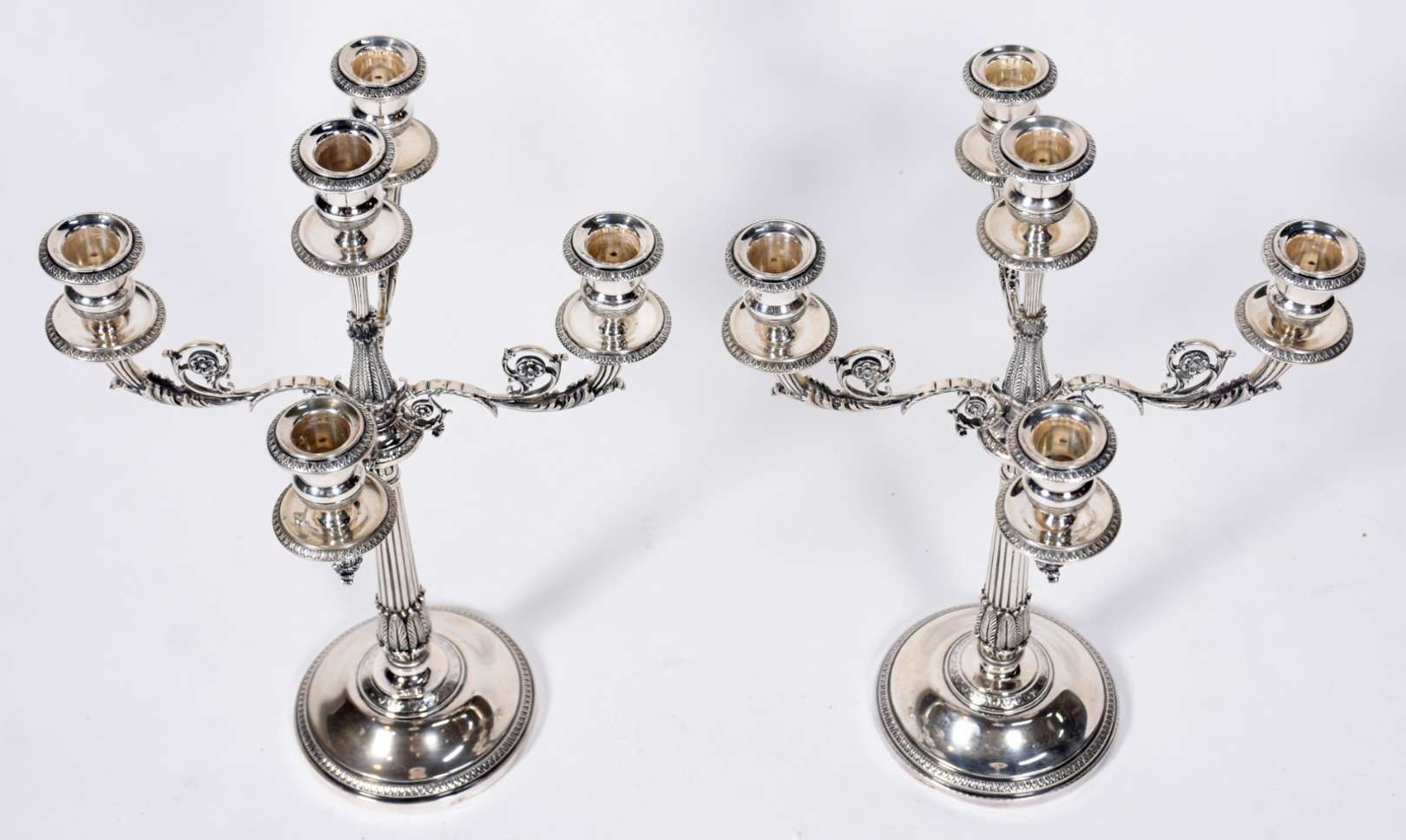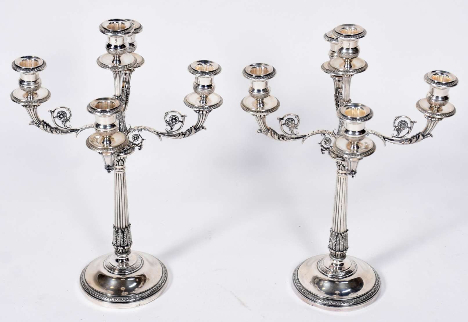 Par de abatjoures na forma de candelabros de bronze para 5 luzes, bases com figuras de "puccis".