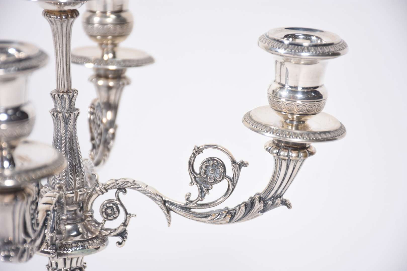 Par de castiçais de prata contraste 800 mls., decorado com flores e concheados em relevo. Peso da prata: 1520 g. (Por...